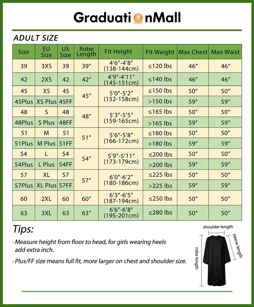 Mint Fresh eBay Template Welcome to Our Stores! Find the perfect item for your lifestyle. Shop with peace of mind and enjoy quality products. Matte Graduation Gown Cap Tassel Set 2025 for High School and Bachelor Navy Blue 39(4'6"-4'8") Product Overview Main Features What You Get: 1 Gown + 1 Cap + 1 Tassel with removable 2025 year charms (If you receive no or wrong tassel, please us first). Gown Size: Robe length 39 inchs, fits height from 4'6" to 4'8", max chest 46 inchs. Note: This is the loose style. Quality Material: Thick matte polyester, smooth and strong zipper. Length Tips: The robe bottom off the ground by 8"-10", around end by calf. If you like to ankle, please choose one or two sizes larger. Easy Cleaning: Machine Wash or Dry Clean, ironing in low temperature is recommended to keep gown wrinkle free. Shipping Guidelines We ship all orders to your registered shipping address. Verify your details before finalizing your purchase. Items typically leave our facility in 1-2 business days, and delivery usually takes 3-7 business days depending on your region. Returns & Satisfaction Your satisfaction matters to us. If you wish to return an item, initiate the process within 30 days of receiving your product. All returned items should remain in original packaging and condition to qualify for a refund. If you encounter any issues, please contact us through messaging system. Payment Details We accept major credit cards and PayPal through eBay’s secure checkout. Kindly verify your billing info for a seamless experience. Need Assistance? If you have any questions or require further support, send us a message via eBay’s platform. We strive to respond within 24-48 hours.