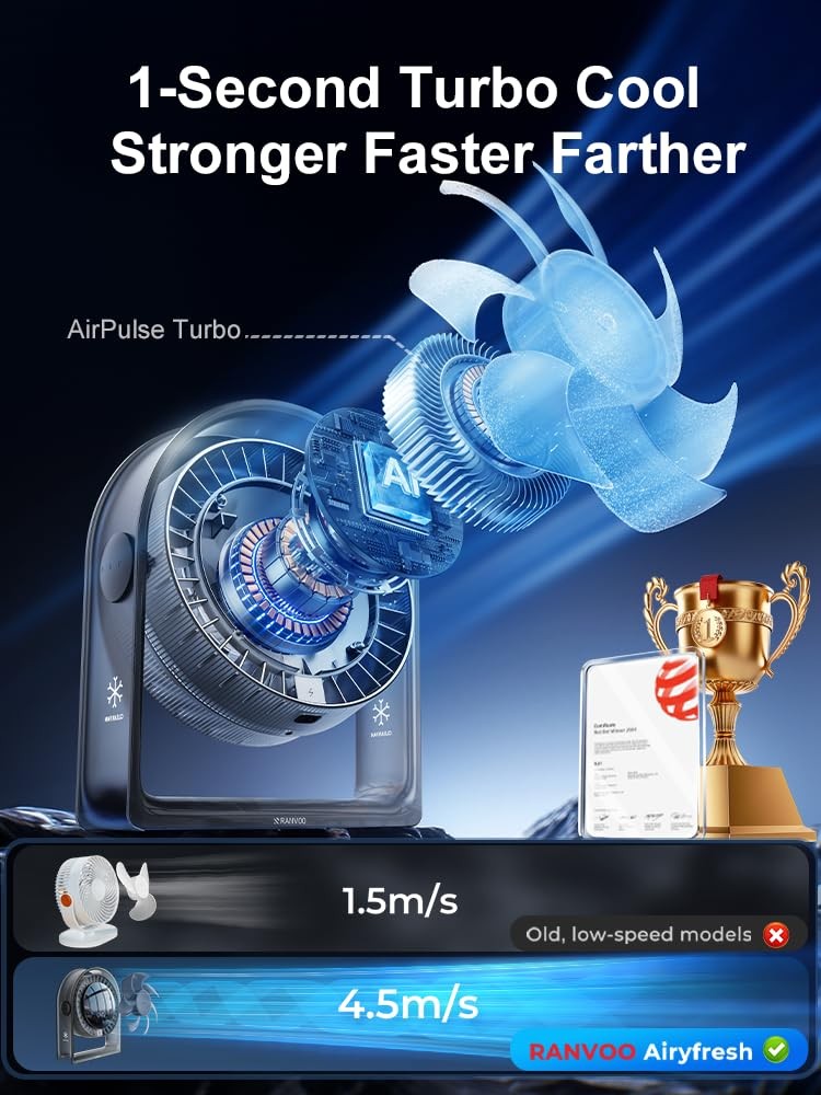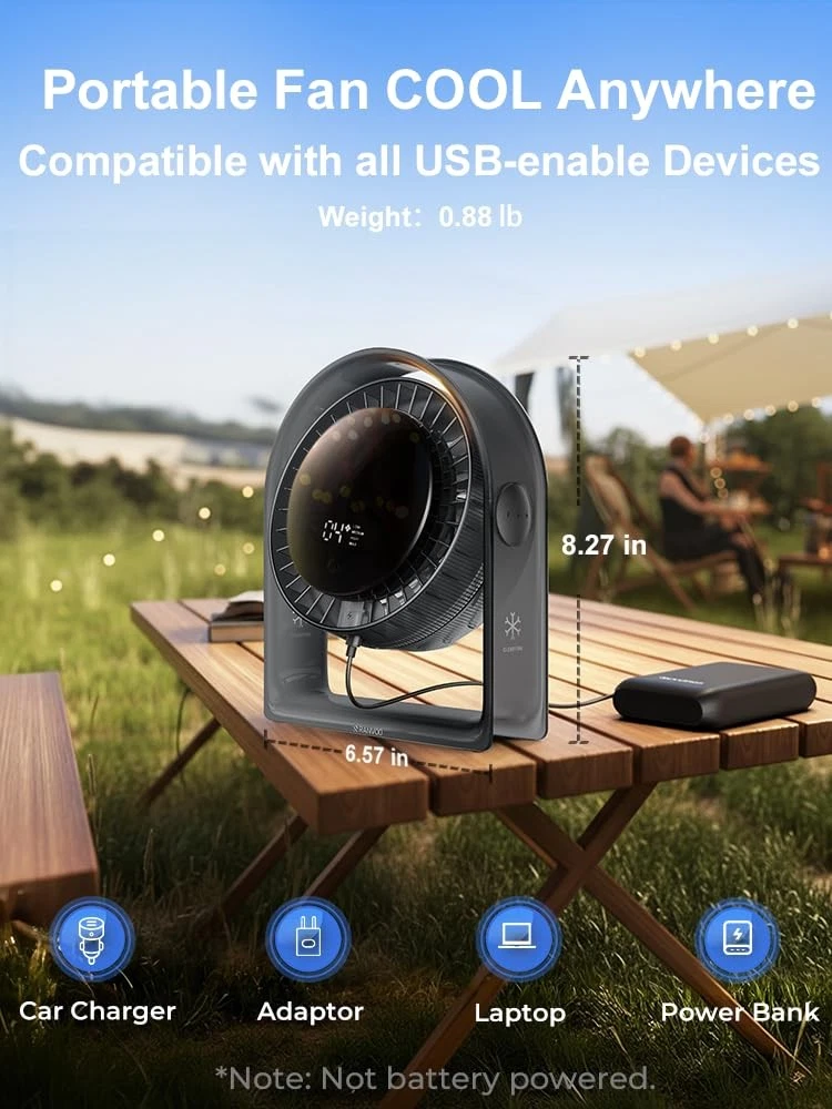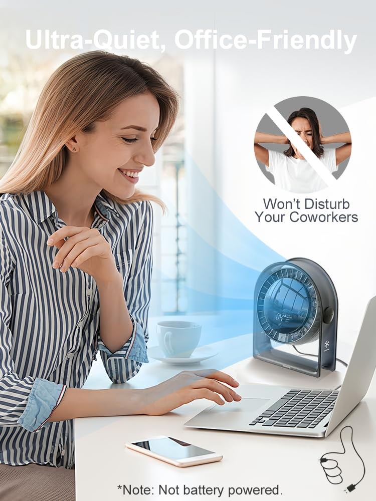 Why choose desk fan? 【4 Speeds & Display】USB desk fan with an upgraded screen showing four speeds. the airflow you want with touch—no need to adjust through 100 settings. Low is perfect for quiet spaces like office or bedroom, providing a subtle breeze without discomfort. Medium offers balanced airflow for everyday use in living room or home office. High cools you down during intense work or exercise. Max delivers powerful airflow, perfect for hot weather, outdoor activities, or travel. 【True Circulator】Engineered with aerospace-inspired airflow technology and tornado-mimicking structure, the fan system leverages aerodynamic principles to deliver focused airflow up to 3 m/s. Its 7 helical blades at 55° angles (vs. traditional 4-blade 45° designs) boost circulation efficiency by 150%. Achieves full-room coverage in 3 minutes with zero dead zones – no stagnant , just instant cooling . 【Quiet & Discreet】portable usb desk fan Equipped with a German innovative magnetic suspension noise-reduction motor, this small cooling table fan delivers smooth, powerful airflow while reducing clamor by up to 50%(the lowest as 12dB). The usb fan ensures a comfortable, quiet working environment without disturbing others. Additionally, the anti-slip base reduces vibration, providing an immersive experience for studying, working, or deep sleep. 【Compact & Portable Design】Airyfresh USB desk fan is designed for ultimate convenience, with a compact size of just 6.57×2.76×8.27 inches (LxWxH) and weighing only 0.8lb. This USB fan portable fits easily on any desk, nightstand, or small space. The portable fan unique rectangular base design saves space compared to traditional round bases, keeping your desk tidy while maximizing space. Perfect for bedrooms, offices, dorms, or travel. 【Safe & Care】The desk Fan is perfect for homes with babies, , and pets both beautiful and healthy. The fan back features a high-density mesh, and the fan front has invisible blades to protect fingers from accidental injury. Made from virgin materials, avoiding the recycled plastic used in most solid-colored fans.The usb table fan semi-transparent design also allows easy dust detection, removable back cover makes cleaning convenient, allowing you to enjoy fresh, healthy airflow. 【120° Vertical Adjustment】When used with conditioning, it helps balance room temperature quickly, enhancing cooling efficiency while saving energy.The oscillating fan wide-angle airflow design ensures a gentle breeze, preventing headaches even with extended use. Featuring WOOZOO technology, this fan offers precise airflow control with manual tilt, adjustable within a 120° range. Whether sitting, standing, or lying down, this cooling fan portable meets all your cooling needs. 【Professional 】's goal is to provide the nice and ensure you are satisfied with this desk fan. We value your cooperation and look forward to resolving any issues for you. Please via the Message Center for any concerns such as unwanted, wrong or defective . Steps here: Your Orders → Click the Detail Page of the Product You Purchased → Click in the → Ask a Question. Note: No battery . (-) USB charging is with chargers, power banks, laptops, and car chargers. fans fan portable fan for bedroom desk fan usb table fan personal fan desk fans small quiet woozoo mini small cooling fan oscillating portable fan for travel room bedroom fan desk dorm fan desktop bed office cold turbo bedside gifts gift fan portable fan fan for bedroom desk fan personal fan fan woozoo fan mini fan small fan cooling fan oscillating fan fan portable desk fans small quiet fans fans for bedroom portable fans small fans for bedroom portable fan for travel usb fan travel fan room fan bedroom fan table fan small desk fan dorm fan baby fan high velocity fan mini portable fan cordless fan desktop fan bed fan office fan fan for bedroom with cold fan for dorm quiet fan usb fan portable turbo fan small portable fan bedside fan cooling fan portable usb desk fan rotating fan computer fan fan for dorm room powerful fan small oscillating fan small fan fan small fan for desk dorm room fan circulator fan woo zoo fan woozoo fan for college dorm room wind machine fan usb fan for desk fan desk fan quiet bladeless desk fan desk fan usb desk top fan portable desk fan quiet desk fan office desk fan fan for desk small desk fan quiet dorm fan woozoo college dorm fan Ventilador de escritorio Ventilador portátil Mini ventilador Ventilador USB mini portable fans desk fan mini fan fathers mothers day gifts small desk fans small quiet desktop table fan small fans for desk small fans for bedroom quiet desk fan personal fan mini fan for desk fan for bedroom desk fans office bedside fan cute small tabletop fan back to suppliesportable fan for bedside quiet bedside fan for sleeping quiet bedside fans quiet bedside fans for cooling and sleep work desk fan silent desk fan for office desk top fans for office desk fan for office 【Thoughtful Gift】Mini fan size (6.57 × 2.76 × 8.27 in) fits bags, dorm desks, office cubicles, and bedside tables without the bulk. USB powered (no battery, 3.94ft cable ); works with laptops, power banks, and wall adapters. The office desk fan comes in an elegant gift . It is suitable for Mothers Day Gifts, Fathers Day Gifts, Valentine’s Day, Christmas, New Year, back to supplies, Thanksgiving, and birthdays 【True Circulation for Small Spaces】The desk fan’s 7 helical blades (55° angles) and airflow tech boost cooling efficiency by 150%—so your bedside, desk, dorm, or small office stops feeling stuffy fast. Pair with AC, and it cools the room in 3 minutes—no hot spots, just instant refreshment 【Whisper-Quiet Comfort】Equipped with a German magnetic motor, it runs at 23db—quieter than a library whisper. The portable desk fan anti-slip base eliminates vibrations, ensuring it won’t disturb video calls, baby naps, or deep sleep 【Safe for & Pets】Invisible blades and a de