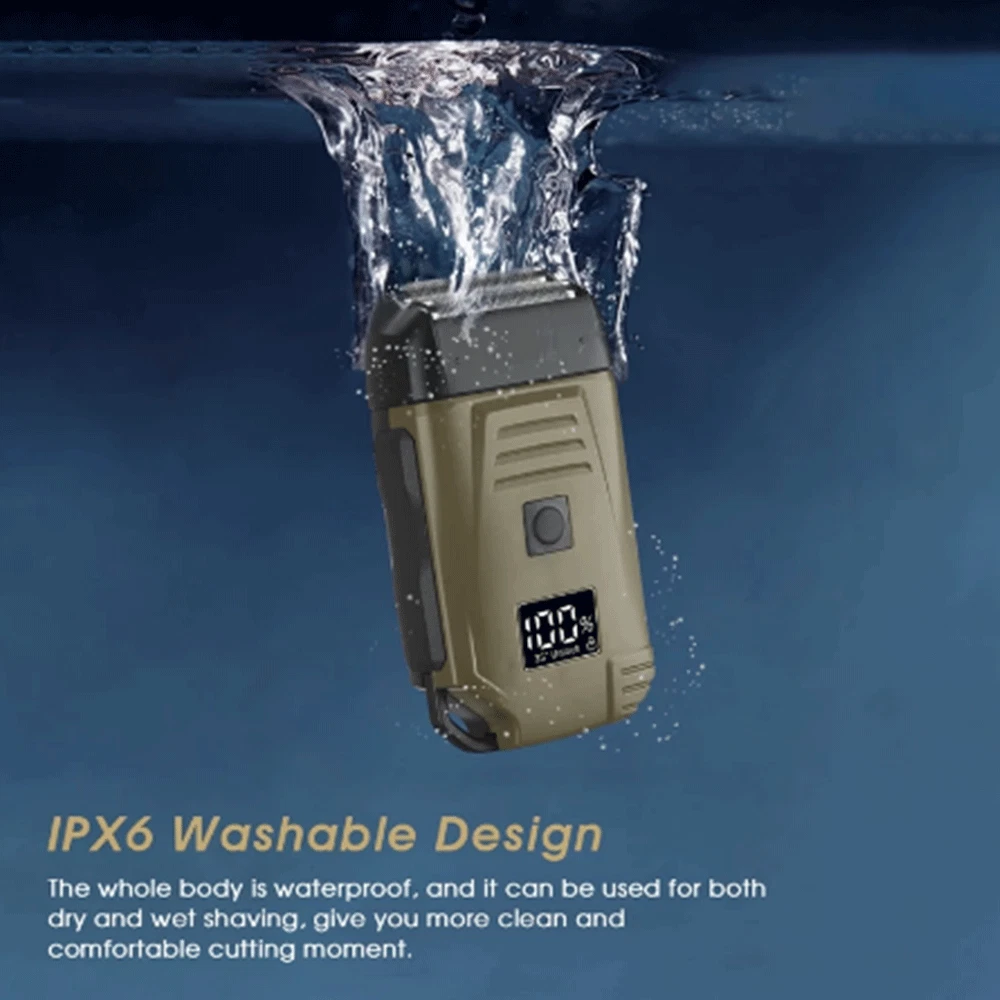 Specification Feature: Newly designed army green double-edged shaver, a machine to solve the problem of hair and beard, LCD display to check the battery at any time, IPX6 body waterproof performance, lightweight design and easy to carry. Work:Cord/cordless Type: USB Rechargeable Usage Time: 90 mins Charging Time: 2 hours Voltage: 100-240V,50/60Hz Material: ABS Weight : 250g Color : Army Green Machine Size : 4.96*2.76*1.4inch Package Size : 15.2*9.*4.5cm/6.1*3.7*1.7inch Package Included: 1* trimmer 1* Protective cover 1*charger 1* Cleaning brush 1* Manual