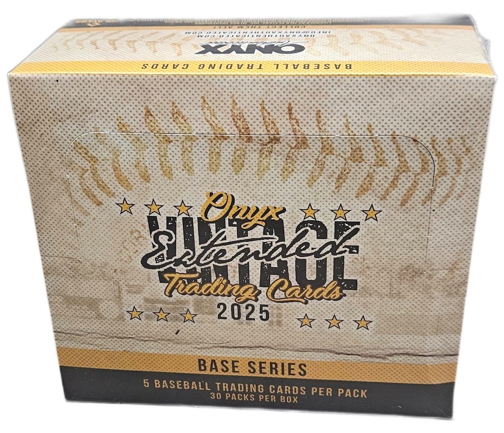 2025 Onyx Vintage Extended Baseball Hobby Base Series Box 2025 Onyx Vintage Extended Baseball - Hobby Base Series Box IN STOCK 30 Packs Per Box with 5 Cards Per Pack, 5 On Card Autographs and 5 Parallels Per Box 2025 Onyx Vintage Extended Baseball Trading Cards are loaded with top prospects, 2025 top draft picks, All-Stars, and future first round picks! 2025 NL Cy Young front runner Paul Skenes headlines the Fall lineup! 2025 top draft picks Eli Willits, Ethan Holliday, Seth Hernandez and many more start the run of future stars. Discover Konnor Griffin, Kevin McGonigle, Jesus Made and more of the top prospects in baseball in this loaded product! Look for rare inscriptions, rare diamond avengers inserts and limited parallels of your favorite players! 5 Autographs 5 Parallels