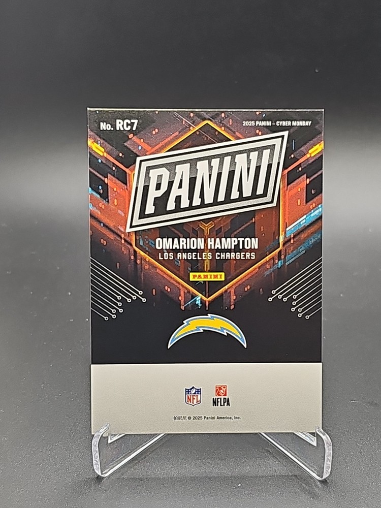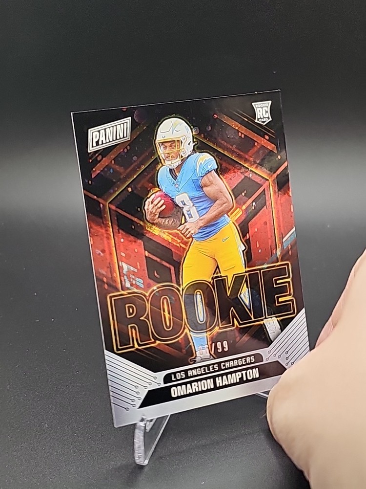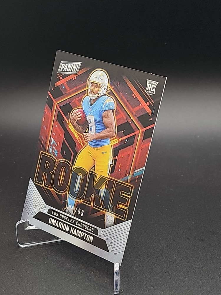 Sport:FootballSet:2025 PaniniSeason:2025League:National Football League (NFL)Player/Athlete:omarion HamptonFeatures:Serial Numbered, RookieManufacturer:PaniniTeam:Los Angeles ChargersType:Sports Trading Card