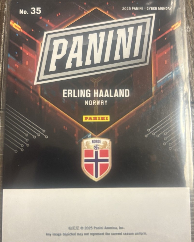 The 2025 Panini Cyber Monday Special Erling Haaland #35 trading card is a limited edition collectible featuring the talented soccer player from Norway. This exclusive card is part of a 199 print run, making it a highly sought-after item for fans and collectors. Manufactured by Panini