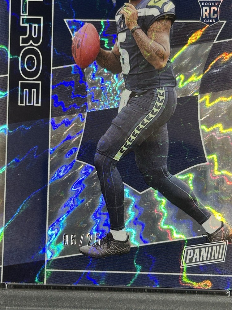 🎽JERSEY MATCH 06/25 PSA MINT 9🎽 The 2025 Panini NSCC Jalen Milroe Lightning /25 Jersey Match Seahawks PSA Mint 9 trading card is a highly sought-after collectible item for football fans. This card features the rookie player Jalen Milroe from the Seattle Seahawks and Alabama Crimson Tide, with a limited print run of only 25. Manufactured by Panini as part of the 2025 set, this card is a special edition parallel variety from the Nscc Silver Pack, making it a valuable addition to any sports trading card collection.