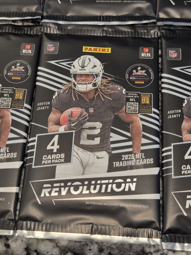 The 2025 Panini Revolution NFL Trading Cards 10 Pack contains a total of 40 cards that are factory sealed. Each pack is specifically focused on the National Football League (NFL) and includes cards from the 2025 Revolution set. As a manufacturer of sports trading cards, Panini ensures that each pack offers a variety of cards featuring players from the NFL season of 2025. This product is perfect for football fans and collectors looking to add to their collection of sports trading cards with a promise of authenticity and quality.