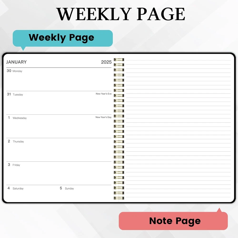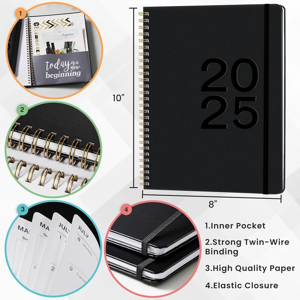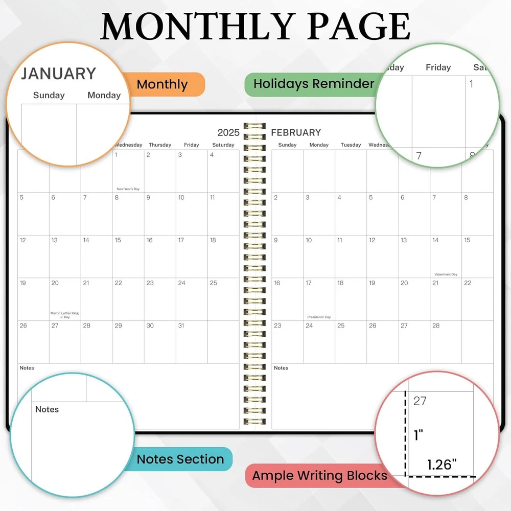 2025 Planner - Planner 2025, 8" x 10", Jan.2025 - Dec.2025, weekly monthly planner 2025 with Elastic Closure, Strong Twin-wire, Back Pocke Product Details 2025 Planner - This weekly monthly planner 2025 is from Jan 2025 to Dec 2025, 8” × 10”, featuring 12 monthly pages and 53 weekly pages with ample writing space for easy year planning and scheduling. Monthly Page - The monthly page of the 2025 planner provide ruled writing block measured 1'' x 1.26'' for writing. Besides, holidays will remind you of the important dates. Note section for you write your daily to do list, thoughts, memorandants. Weekly Page - Each weekly page of this 2025 planner occupies 2 sheets, one is for the whole week days, each day provide rules ample area for you to write, another one is a whole lined note page for you to write some additional things. Features - Quick Reference Information | Yearly Overview | Holidays | Contacts Pages | Elastic Closure | Inner Pocket | Strong Twin-wire | Thickened Hardcover | Thicker Paper Stylish Design - Neat design of the weekly monthly planner 2025 suitable for offices, schools and meetings. Let's focus on your most important things and enjoy a more organized life.
