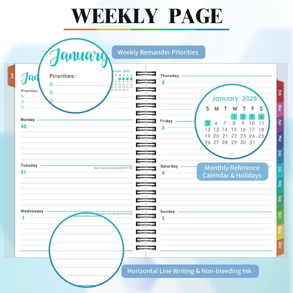 2025 Planner - 2025, Jan. 2025 - Dec. 6.4" x 8.4" x 6.3", Black Product Details Manufacturer: Simannie Brand: Simannie Item Weight: 6 ounces Product Dimensions: 8.4 x 6.3 x 0.3 inches Item model number: SEA5PPHDLZ45B24 Color: Black Cover Material: Polypropylene Material Type: Paper Size: 8.4" x 6.3" Ruling: Ruled Sheet Size: 8.4 x 6.3 Inches Manufacturer Part Number: SEA5PPHDLZ45B24 Brand: Simannie Color: Black Cover Material: Polypropylene Year: 2022 Format: Organizer Calendar Type: Weekly, Monthly Target Audience: Student Sheet Size: 8.4 x 6.3 Inches Material: Paper Item Weight: 6 Ounces JAN. 2025 - DEC. 2025 - This planner 2025 features 12 months of weekly and monthly pages and holidays marked. With weekly and monthly sections for easy planning and scheduling. Charming cover for a better visual enjoyment. Focusing on easy planning and scheduling with weekly and monthly sections. Available in a variety of bright and fun colors - ranging from classic to fresh. PROFESSIONAL CONTENT DESIGN - 12 months of monthly pages with past and future monthly referencing + 12 months of ample lined weekly pages + 2025-2026 calendar overview + 2025-2027 holiday pages + 2 contact pages. Focus on meeting all your needs. FUNCTIONAL DETAILS - Metal lay-flat twin-wire binding allows to open at one page + Features 12 monthly colorful marked tabs for quick checking + Past and future referencing in monthly page + Personalize your signature on the bonus title page. SUPERIOR QUALITY - Thicker paper than normal 2025 academic planner in the market to reduce ink leakage, erase fraying and shade issues + Organize your life in style with this elegant and gorgeous colorful planner. OUR SERVICE - We will do our best to make you happy if you have any quality problems. Give us a chance and let us show you a great 2025 planner experience!