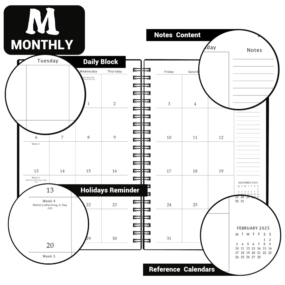 2025 Planner - 2025 Planner Weekly and Monthly, Jan 2025 - Dec 2025, 5" x 8", Twin-Wire Binding, Holidays, Back Pocket, Thick Paper, Classic Black 2025 Planner – From January 2025 - December 2025, this planner 2025 covers 12 months of weekly and monthly pages. It measures 5" x 8" and is perfect for carrying around in a bag. Monthly Page - Each month of this planner 2025 covers two full pages which is great for long-term planning. This 2025 planner includes sections for holidays reminder, notes content, and reference calendars, allows you to achieve your goals for the month more efficiently. Weekly Page - There are ruled daily blocks + holidays reminder in each weekly page, and the Ruled Notes Pages with ample space for jotting down ideas, appointments, and important dates. Functional Details - 5" x 8" Monthly & Weekly Pages | Quick Reference Information | 2 Year Reference | Holidays | Contact pages | Ruled Notes Pages | Twin-Wire Binding | PP Cover Waterproof | Back Pocket Stylish Design - The color of this plan is classic black, durable and not outdated, suitable for various occasions, essential for lovers of simplicity. The high quality paper of planner is ink-proof and wear-resistant, designed for a smooth writing experience. 2025 Planner – From January 2025 - December 2025, this planner 2025 covers 12 months of weekly and monthly pages. It measures 5" x 8" and is perfect for carrying around in a bag. Monthly Page - Each month of this planner 2025 covers two full pages which is great for long-term planning. This 2025 planner includes sections for holidays reminder, notes content, and reference calendars, allows you to achieve your goals for the month more efficiently. Weekly Page - There are ruled daily blocks + holidays reminder in each weekly page, and the Ruled Notes Pages with ample space for jotting down ideas, appointments, and important dates. Functional Details - 5" x 8" Monthly & Weekly Pages | Quick Reference Information | 2 Year Reference | Holidays | Contact pages | Ruled Notes Pages | Twin-Wire Binding | PP Cover Waterproof | Back Pocket Stylish Design - The color of this plan is classic black, durable and not outdated, suitable for various occasions, essential for lovers of simplicity. The high quality paper of planner is ink-proof and wear-resistant, designed for a smooth writing experience. Shipping from the USA All of our products are shipped from the USA, ensuring quick delivery to your destination. Payment We offer the following payment methods: PayPal, credit card, bank transfer, and eBay's secure payment system. Free Shipping & Free Returns Shipping within the USA is FREE. Additionally, any return is absolutely free for you. Risk-Free Purchase You have the option to return an item within 30 days without any justification. We cover the return shipping costs! Fast Shipping We ship immediately upon receipt of payment. Generally, the package is delivered within 2-3 days in the USA. If it takes longer, we will contact you. Quality and Costs Made in Europe, USA, China No customs fees or additional charges Total satisfaction guarantee Invoice with declared VAT available upon request in .pdf format Feedback Your feedback is very important to us. After you pay for your purchase, you will automatically receive positive feedback from us.