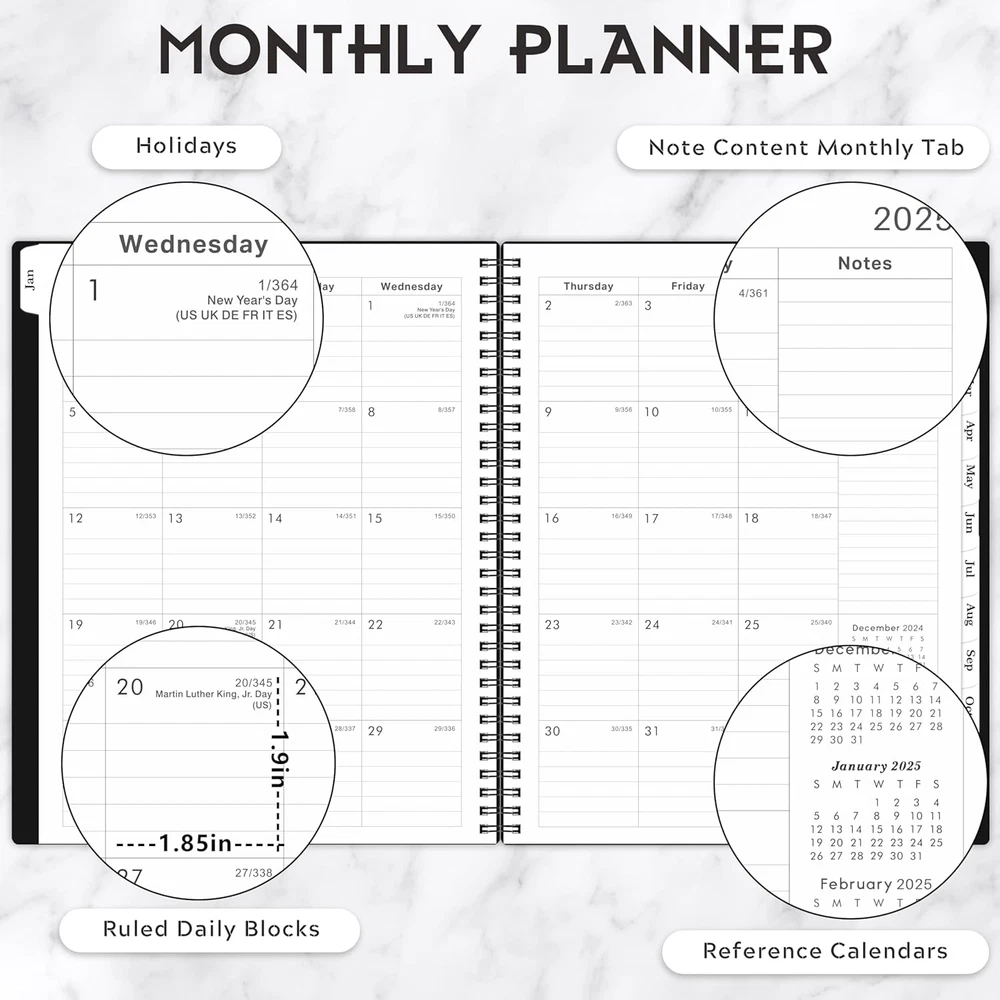 Store New Arrivals Add to Favorite View Feedback Contact 2025 Planner 8.9" X 11.2" Weekly Monthly Jan-Dec Tabs Twin-Wire Pocket 2025 Planner 8.9" X 11.2" Weekly Monthly Jan-Dec Tabs Twin-Wire Pocket ✨2025 planner for your long term planning - This planner 2025 covers 12 months from Jan 2025 to Dec 2025. Perfect for efficient year-round planning and organization. The size of the 2025 planner is 8.9" x 11.2", suitable for your backpack or work bag. ✨Monthly planning - Each month of this monthly planner 2025 covers two full pages, offering ample space for long-term planning. Featuring a monthly overview with ruled writing blocks (1.8" x 1.91"), three-month reference calendars, and a note section.This 2025 planner helps you plan your month ahead efficiently. ✨Weekly planning - The weekly page in the planner 2025 provides enough space to manage your schedule, set goals and track progress. It also includes a three-month mini-calendar and key holidays for each day, encouraging consistent and organized recording habits among users. ✨Special features: Yearly Overview of 2025-2026 | 12 Monthly Tabs | Holidays Reference | 2 Contacts Page| Twin Wire Bound Lays Flat | Premium Thick Paper | Inner Pocket | Elastic Closure ✨Efficient time management - Maximize productivity with our 2025 weekly and monthly planner, designed to keep your life organized. Perfect for coordinating events, tasks, and objectives, it helps you prioritize and streamline your schedule, all in one convenient tool. Product Description 2025 Planner - Jan 2025 - Dec 2025, Weekly and Monthly Planner 2025 with PP Cover (Black) About This 2025 Weekly & Monthly Planner Size of this 2025 planner: 8.9'' x 11.2'' (include cover and Twin-wire Binding) Size of this 2025 planner inner pages: 7.9'' x 11'' Date of this planner 2025: JAN 2025 - DEC 2025 Functional Designs of this planner 2025 daily weekly and monthly : Flexible Cover | Twin-Wire Binding | Marked Tabs | Thick Paper | Elastic Closure Inner Pages of this planner : Weekly & Monthly Pages | Contacts | Quick Reference Information | Yearly Overview | Holidays Cover Design of the weekly and monthly planner 2025: Neat design is more generous and versatile, suitable for offices, schools, meetings Main Pages of This 2025 Weekly and Monthly Planner Monthly Pages Monthly: ruled daily blocks for open scheduling Notes: make notes or to-do list Calendar: past, present, future monthly referencing Holidays: marked holiday, Julian date Weekly Pages Weekly : lined space for detailed planning Holidays: marked holidays for reminder Three-month calendar: past, present, and future at the top of the week page for reference. Additional Pages Quick reference information pages 2025-2026 yearly overview 2025-2027 holidays Contact pages Comprehensive Display of The Weekly And Monthly Planner 2025 Strong Twin-wire Binding 12 Monthly Tabs Elastic Closure Inner Pocket What can you do with our planner 2025? Use it as an agenda, gratitude journal, class schedule, or personal organizer. Keep track of meetings, set goals, plan meals, and track your workouts with ease. Plus, jot down ideas and write wish lists for a perfect all-in-one solution! Product Dimensions: 8.78 inches x 11.14 inches x 0.71 inches. Weight: 1.08 lb About Us Our vision is to be eBay’s most customer-centric store, where customers can find and discover anything they might want to buy online, and endeavors to offer its customers the lowest possible prices." "Our mission is to serve consumers online and focus on selection, price, and convenience." #Find it, Love it, Buy it Payment policy We currently accept payment via eBay managed payment only. Once payment is cleared, We will dispatch your shipment with 1-3 business days. Please refer to the "Shipping" tab for more information regarding shipping speed to your destination. Shipping policy 1. We offer FREE shipping on all orders! 2. We ship within three business days of payment, usually sooner. 3. We use a selection of shipping services such as UPS, FedEx, USPS etc. 4. We only ship to the lower 48 states, no APO/FPO addresses or PO Boxes allowed. 5. Local pickups and combined shipping options are not provided at this time. Returns We are committed to your happiness. That’s why we offer a 30-Day Return Policy on items that you are not completely satisfied with. You have the option for a refund or an exchange of the item.