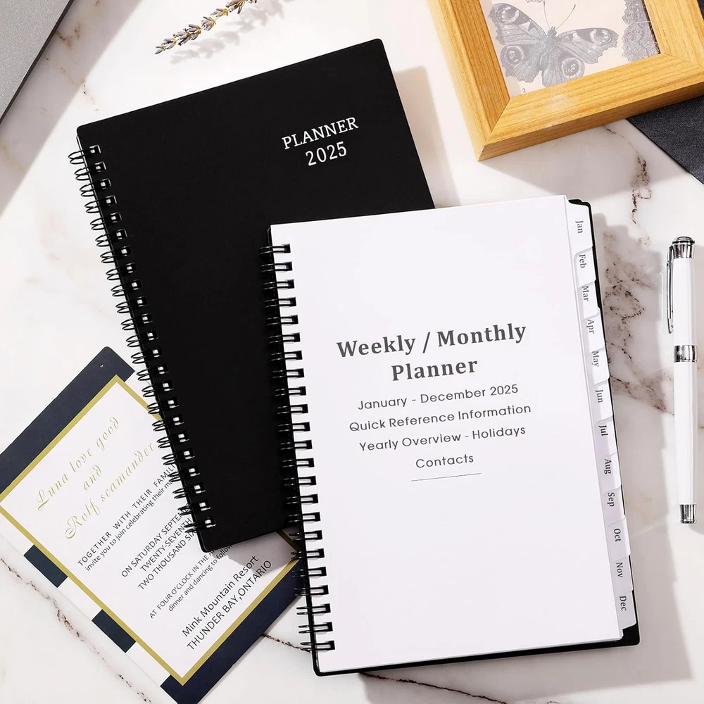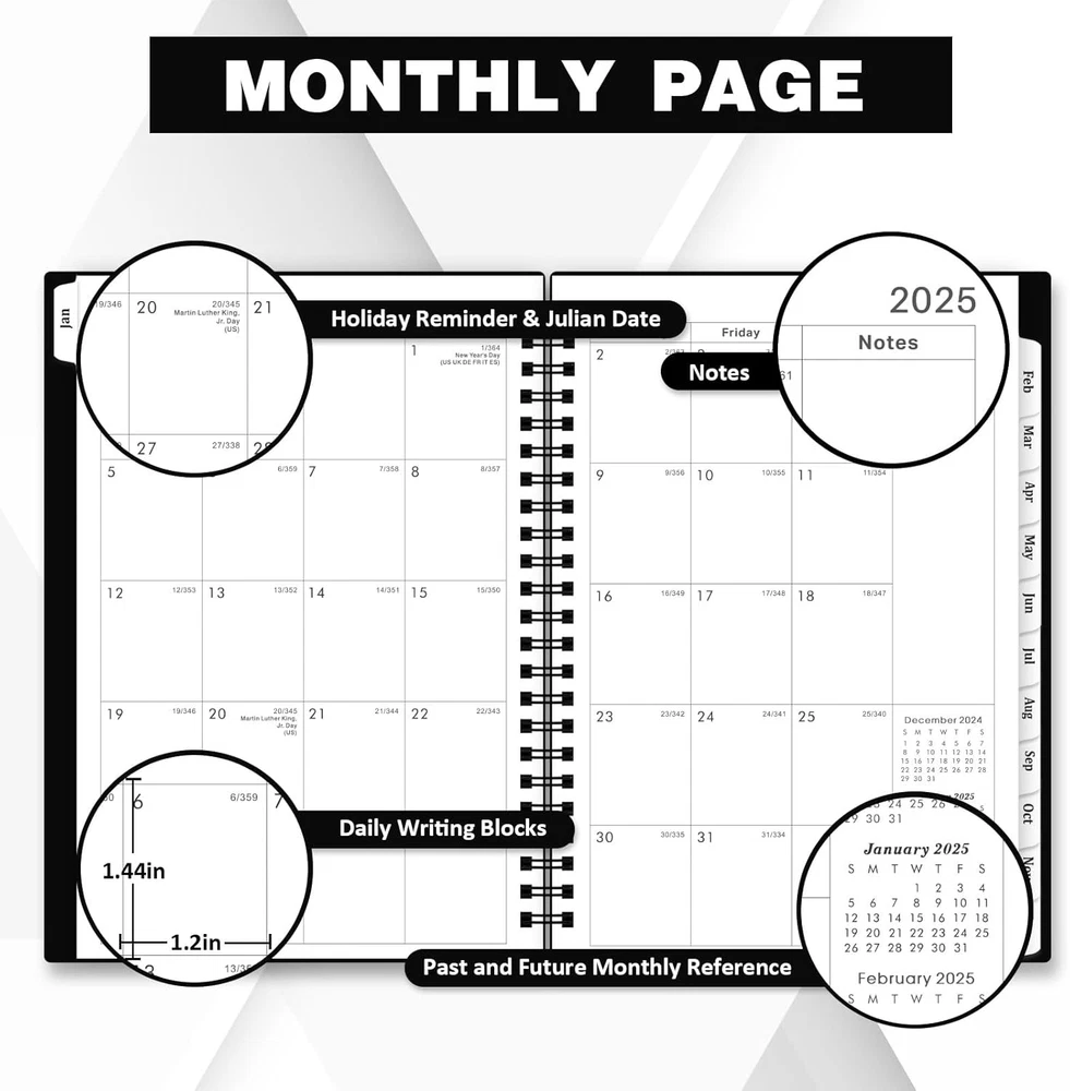 Calendar Type: Monthly, Weekly Paper Size: A5 Item Dimensions L x W x Thickness: 8.3"L x 6.25"W x 0.4"Th Brand: Does not apply Type: Does not apply UPC: 313108840844 Year: 2025 Material Type: Paper, Metal Cover Material: Paper Item Dimensions L x W: 8.3"L x 6.25"W Binding: Office Product MPN: Does not apply Format: Day to Day Calendar gtin13: 313108840844 Additional Features: Flexible Cover, Twin-wire Binding Target Audience: Adult Material: Paper, Metal Color: Black Recommended Uses For Product: Academic planning, daily, weekly, and monthly scheduling, noting Model Year: 2025 Sheet Size: A5