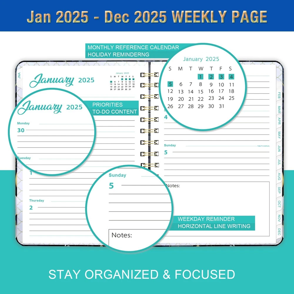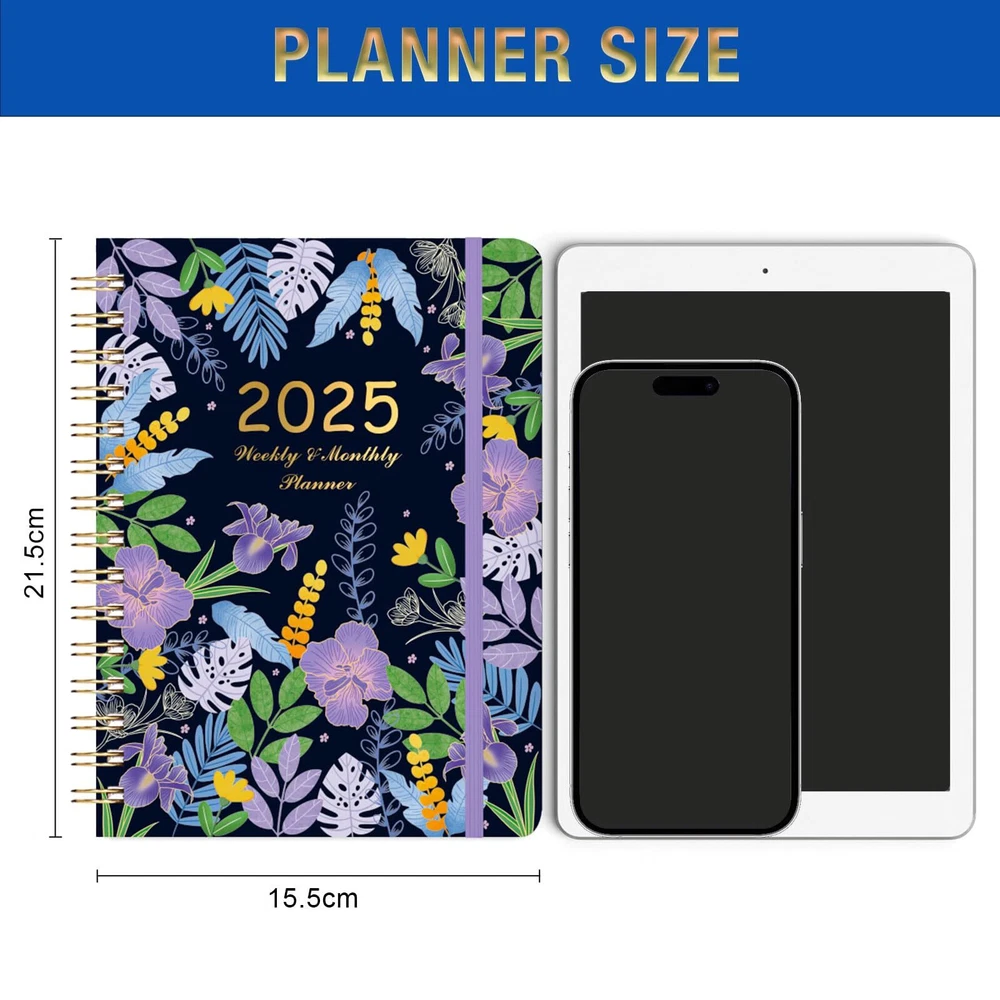 2025 Planner - Planner 2025 Week to View, Planner 2025, January 2025 - December 2025, 2025 Planner with Monthly, Twin-Wire Binding, Hard Cover, Elastic Closure, Violet flowers 🌼 PLANNER 2025 – January 2025 - December 2025, this 2025 weekly & monthly planner with vibrant flowers and glass hardcover, covers 12 months of monthly and weekly pages for an easy year-round planning. "21.5 x15.5 cm" A5 Planner is easy to use and carry away 🌼 2025 MONTHLY OVERVIEW – Each monthly pages of this 2025 Planner contains an overview of the month and a notes section. Quotes of the month will keep motivating you, the previous and next month calendars reference for a simple past reviewing and future planning 🌼 2025 WEEKLY OVERVIEW - Each weekly spread has “priorities” for top to-do lists, lots of space for jotting down your detailed daily schedule, like appointments, events and deadlines, etc. The holidays marked remind you of important dates, tracking all day with a clear weekly view 🌼 MORE FEATURES - Strong Metal and Lay-flat Spiral Bound gives this 2025 calendar planner a vibrant look to light up your day. Back Pocket to collect loose items, Premium Thicker Paper to avoid ink bleeding through, making your life/work/study more organized 🌼 YEARLY Planner 2025 – This 2025 Planner weekly and monthly includes a list of Yearly Overview, Holidays and Contacts pages for your convenient daily use. More, 12 durable coated monthly tabs / dividers are long lasting and make accessing information a breeze. Elastic band keeps your planner 🌼 PLANNER 2025 – January 2025 - December 2025, this 2025 weekly & monthly planner with vibrant flowers and glass hardcover, covers 12 months of monthly and weekly pages for an easy year-round planning. "21.5 x15.5 cm" A5 Planner is easy to use and carry away 🌼 2025 MONTHLY OVERVIEW – Each monthly pages of this 2025 Planner contains an overview of the month and a notes section. Quotes of the month will keep motivating you, the previous and next month calendars reference for a simple past reviewing and future planning 🌼 2025 WEEKLY OVERVIEW - Each weekly spread has “priorities” for top to-do lists, lots of space for jotting down your detailed daily schedule, like appointments, events and deadlines, etc. The holidays marked remind you of important dates, tracking all day with a clear weekly view 🌼 MORE FEATURES - Strong Metal and Lay-flat Spiral Bound gives this 2025 calendar planner a vibrant look to light up your day. Back Pocket to collect loose items, Premium Thicker Paper to avoid ink bleeding through, making your life/work/study more organized 🌼 YEARLY Planner 2025 – This 2025 Planner weekly and monthly includes a list of Yearly Overview, Holidays and Contacts pages for your convenient daily use. More, 12 durable coated monthly tabs / dividers are long lasting and make accessing information a breeze. Elastic band keeps your planner Shipping from the USA All of our products are shipped from the USA, ensuring quick delivery to your destination. Payment We offer the following payment methods: PayPal, credit card, bank transfer, and eBay's secure payment system. Free Shipping & Free Returns Shipping within the USA is FREE. Additionally, any return is absolutely free for you. Risk-Free Purchase You have the option to return an item within 30 days without any justification. We cover the return shipping costs! Fast Shipping We ship immediately upon receipt of payment. Generally, the package is delivered within 2-3 days in the USA. If it takes longer, we will contact you. Quality and Costs Made in Europe, USA, China No customs fees or additional charges Total satisfaction guarantee Invoice with declared VAT available upon request in .pdf format Feedback Your feedback is very important to us. After you pay for your purchase, you will automatically receive positive feedback from us.