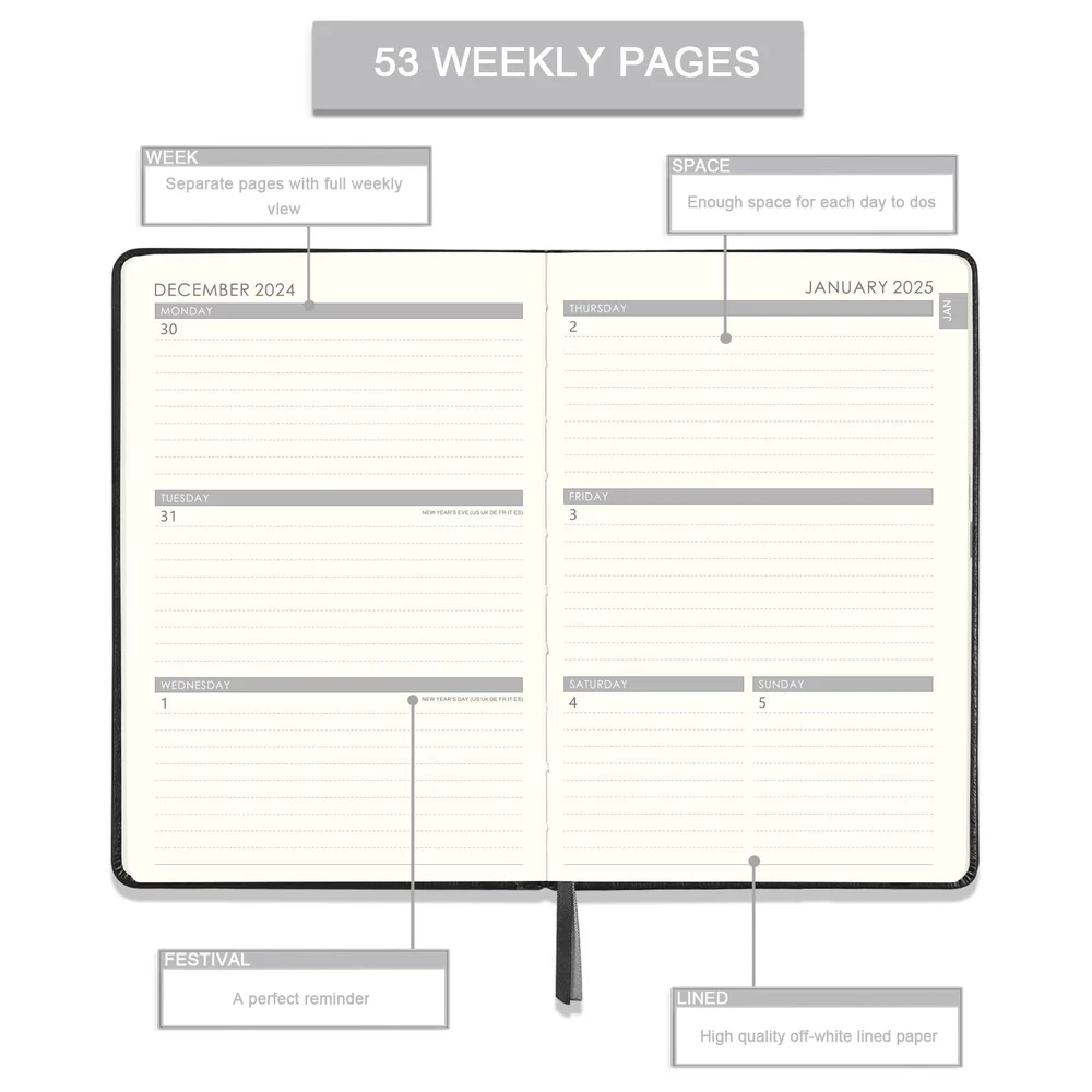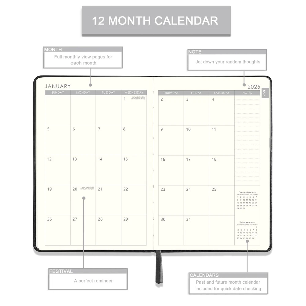 2025 Planner - Planner 2025 Weekly and Monthly with Stickers, 5.7" X 8.2", Jan 2025 - Dec 2025, 2025 Calendar Planner, Pen Holder, Inner Pocket, 44 Notes Pages - Blue 2025 Planner - Jan 2025 - Dec 2025, 5.75" X 8.25", featuring 12 months of monthly and weekly pages for easy year-round planning. The durable soft Faux Leather cover is environmentally friendly and soft touch, with simple and elegant design. Monthly Management - Each monthly spread of the planner 2025 contains an overview of the month and a notes section, remember upcoming plans at-large with the monthly view! Keep your special dates and dream vacations top of mind for your year. Guide Each Week - Weekly spread of the planner 2025 include space to write your daily schedule, detail appointments and keep track of all days clearly with the weekly view. You can see 7 days Start with Monday to Sunday in the couple pages. FEATURES - A5 Planning Pages | Durable Hardcover | Calendar Stickers | Reference Information | Yearly Overview | Holiday | Contacts | Bound | 2 Ribbon Bookmark | Inner Pocket Pouch | 44 Note Ruled Pages UNIQUE DESIGN - The durable soft Faux Leather cover is environmentally friendly and soft touch. With simple and elegant design, the planner is the perfect choice for organizing your life. 2025 Planner - Jan 2025 - Dec 2025, 5.75" X 8.25", featuring 12 months of monthly and weekly pages for easy year-round planning. The durable soft Faux Leather cover is environmentally friendly and soft touch, with simple and elegant design. Monthly Management - Each monthly spread of the planner 2025 contains an overview of the month and a notes section, remember upcoming plans at-large with the monthly view! Keep your special dates and dream vacations top of mind for your year. Guide Each Week - Weekly spread of the planner 2025 include space to write your daily schedule, detail appointments and keep track of all days clearly with the weekly view. You can see 7 days Start with Monday to Sunday in the couple pages. FEATURES - A5 Planning Pages | Durable Hardcover | Calendar Stickers | Reference Information | Yearly Overview | Holiday | Contacts | Bound | 2 Ribbon Bookmark | Inner Pocket Pouch | 44 Note Ruled Pages UNIQUE DESIGN - The durable soft Faux Leather cover is environmentally friendly and soft touch. With simple and elegant design, the planner is the perfect choice for organizing your life. Shipping from the USA All of our products are shipped from the USA, ensuring quick delivery to your destination. Payment We offer the following payment methods: PayPal, credit card, bank transfer, and eBay's secure payment system. Free Shipping & Free Returns Shipping within the USA is FREE. Additionally, any return is absolutely free for you. Risk-Free Purchase You have the option to return an item within 30 days without any justification. We cover the return shipping costs! Fast Shipping We ship immediately upon receipt of payment. Generally, the package is delivered within 2-3 days in the USA. If it takes longer, we will contact you. Quality and Costs Made in Europe, USA, China No customs fees or additional charges Total satisfaction guarantee Invoice with declared VAT available upon request in .pdf format Feedback Your feedback is very important to us. After you pay for your purchase, you will automatically receive positive feedback from us.