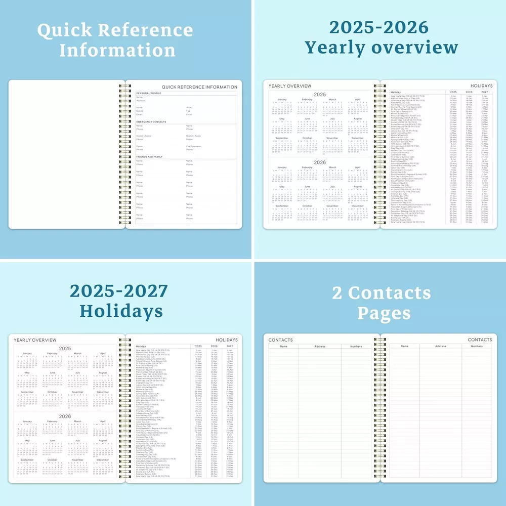 Cover Material: Metal Target Audience: Adult Color: multicolor Franchise: Does not apply Year: 2025 Calendar Type: Monthly & Weekly Brand: Feteulo Country/Region of Manufacture: Does not apply Sheet Size: 8 x 10 MPN: Does not apply Genre: Does not apply Type: Does not apply Format: Organizer Material: Metal Binding: Unknown Binding