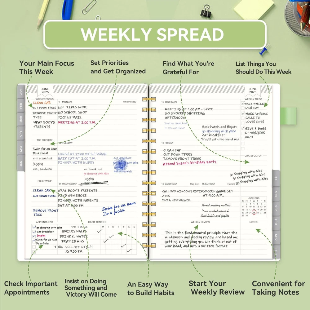 2025 Planner- Weekly and Monthly Planner, AIMPEAK 2025 Calendar Planner for Women, Jan.2025 - Dec.2025, 2025 Daily Planner with Monthly Tabs, Spiral Binding, Green, 5.5"x8.5" 📔2025 Planner: This weekly and monthly planner spans from Jan. 2025 to Dec. 2025, making it perfect for seamless 12-month planning and organization. It features functionally designed additional pages, including a calendar overview for 2025-2026, sections for personal information, goals and plans, an important dates page, holiday pages for 2025-2026 contact pages, and notes pages. 📔Clear Monthly Overview: AIMPEAK 2025 planner features 12 months of monthly pages with tabs for easy reference. Each month includes sections for goals, to-do lists, reviews, and major holidays, with elapsed and remaining days noted. Stay organized by tracking important deadlines, special events, and more. 📔Enhanced Weekly Pages: The 2025 weekly view includes sections for focus, priorities, follow-ups, appointments, habit tracking, to-dos, gratitude, and reviews, with ample space for notes. This 2025 planner provides detailed planning room, helping you stay organized and boost productivity daily and weekly. 📔Premium Features: The Aimpeak 2025 planner has a durable, waterproof PVC cover and twin-wire binding for flat, easy writing. It includes an inner pocket and pen loop for convenience. The high-quality, acid-free paper prevents ink bleeding and enhances the writing experience. Plus, it features a classic and stylish design. 📔Versatile for Every Use: The Aimpeak 2025 planner is ideal for office professionals to manage work and meeting notes, students to organize their study records, and individuals at home to keep track of daily tasks. It also makes a considerate gift for friends and family. 📔2025 Planner: This weekly and monthly planner spans from Jan. 2025 to Dec. 2025, making it perfect for seamless 12-month planning and organization. It features functionally designed additional pages, including a calendar overview for 2025-2026, sections for personal information, goals and plans, an important dates page, holiday pages for 2025-2026 contact pages, and notes pages. 📔Clear Monthly Overview: AIMPEAK 2025 planner features 12 months of monthly pages with tabs for easy reference. Each month includes sections for goals, to-do lists, reviews, and major holidays, with elapsed and remaining days noted. Stay organized by tracking important deadlines, special events, and more. 📔Enhanced Weekly Pages: The 2025 weekly view includes sections for focus, priorities, follow-ups, appointments, habit tracking, to-dos, gratitude, and reviews, with ample space for notes. This 2025 planner provides detailed planning room, helping you stay organized and boost productivity daily and weekly. 📔Premium Features: The Aimpeak 2025 planner has a durable, waterproof PVC cover and twin-wire binding for flat, easy writing. It includes an inner pocket and pen loop for convenience. The high-quality, acid-free paper prevents ink bleeding and enhances the writing experience. Plus, it features a classic and stylish design. 📔Versatile for Every Use: The Aimpeak 2025 planner is ideal for office professionals to manage work and meeting notes, students to organize their study records, and individuals at home to keep track of daily tasks. It also makes a considerate gift for friends and family. Shipping from the USA All of our products are shipped from the USA, ensuring quick delivery to your destination. Payment We offer the following payment methods: PayPal, credit card, bank transfer, and eBay's secure payment system. Free Shipping & Free Returns Shipping within the USA is FREE. Additionally, any return is absolutely free for you. Risk-Free Purchase You have the option to return an item within 30 days without any justification. We cover the return shipping costs! Fast Shipping We ship immediately upon receipt of payment. Generally, the package is delivered within 2-3 days in the USA. If it takes longer, we will contact you. Quality and Costs Made in Europe, USA, China No customs fees or additional charges Total satisfaction guarantee Invoice with declared VAT available upon request in .pdf format Feedback Your feedback is very important to us. After you pay for your purchase, you will automatically receive positive feedback from us.