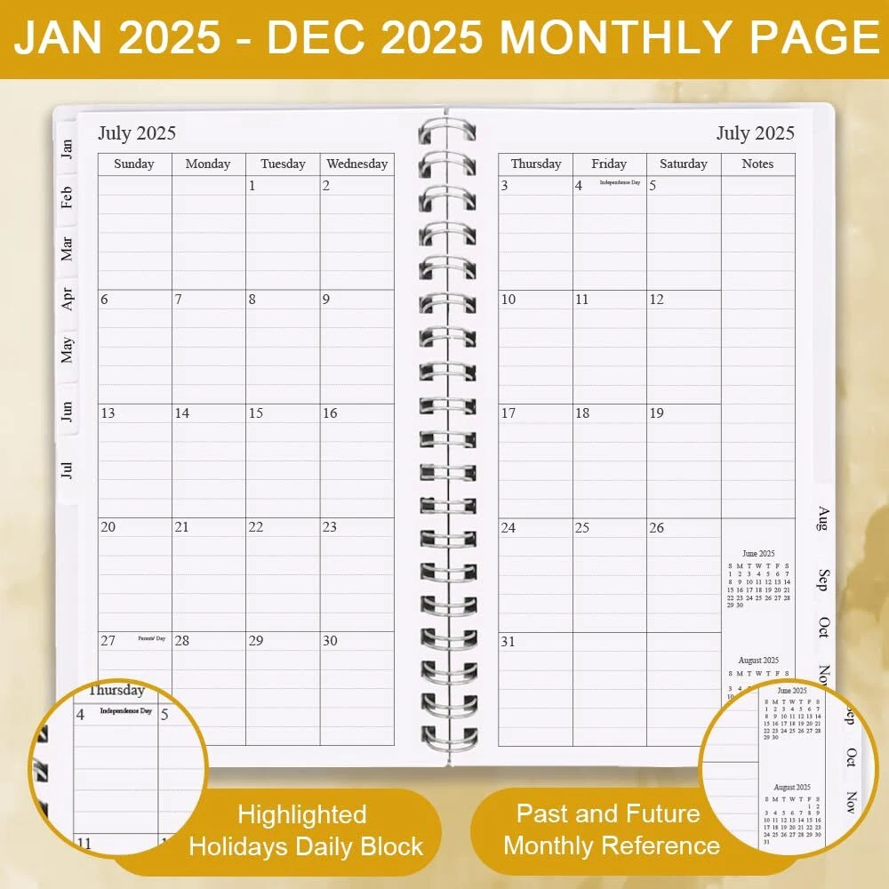 2025 Pocket Planner/Calendar - January 2025 - December 2025, A6 Weekly & Monthly Organizer Notebook & Journal to Track Goals, Easy to Organize Your Daily Life, Medium 3.75" x 6.75", Leaf This 2025 weekly & monthly planner(January 2025 - December 2025) measuring 3.75" x 6.75", planner 2025 is a simple and elegant planner which could keep you organized everywhere you go. Simple page designs and plenty of room for all of your important information. 12 Month planner contains: yearly overview (calendar of 2025-2026) holidays 2 contact pages 12 month calendar sections 53 week sections 14 notes pages(lined) Each monthly spread contains an overview of the month and a notes section. 12 month calendar, 2 pages per month. Plenty of room for notes and details. Each monthly calendar is followed by 5 weekly pages, 2 pages per week. Weekly spread include ample space to write down your daily schedule, appointments, activities, week's focus, to do list/goal and keep track of all days clearly with the weekly view. This distinctive monthly & weekly planner features high quality 100gsm white paper for easy writing and reducing ink leakage, erase fraying and shade issues, providing clean writing space for your appointments, to-dos and reminders. This monthly and weekly planner responds well to fountain pen, gel pen, roller pen, ballpoint pen, highlighter, pencil and etc. Monthly calendar tabs allow easy access to each month’s plans. Sturdy and flexible covers to protect the inner pages well, thick paper for smooth writing, strong twin-wire binding, sturdy plastic pocket to store loose items, like tickets, cards, papers etc, all these details demonstrate high quality. This personal organizer features flexible structures that allow you to keep track of goals, tasks, appointments, project, works, habbits etc. Perfect for planner, organizer, academic agenda or note pad for school, work or home or makes a great gift. Plan, create and schedule your daily life with this gorgeous monthly & weekly planner now. PLANNER OVERVIEW - 12 Month planner, January 2025 - December 2025, featuring 12 months of monthly and weekly pages for easy planning. 3.75" x 6.75", comfortable to carry and use MONTHLY - Planner 2025 each monthly spread contains an overview of the month with holidays, previous & next month calendars and a notes section. Plenty of room for notes and details WEEKLY - Weekly spread include ample space to write down your daily schedule, detailed appointments and activities and keep track of all days clearly with the weekly view TABS & POCKET & LAY FLAT BINDING - Each month is separated with laminated tabs, Inner pocket to store loose items like tickets, cards, papers etc. Durable twin-wire binding for laying completely flat SUPERIOR QUALITY - 2025 planner with sturdy and flexible cover to protect the inner pages well. Thick paper to reduce ink leakage, erase fraying and shade issues. Plan, create and schedule your daily life with this gorgeous monthly &weely planner Shipping from the USA All of our products are shipped from the USA, ensuring quick delivery to your destination. Payment We offer the following payment methods: PayPal, credit card, bank transfer, and eBay's secure payment system. Free Shipping & Free Returns Shipping within the USA is FREE. Additionally, any return is absolutely free for you. Risk-Free Purchase You have the option to return an item within 30 days without any justification. We cover the return shipping costs! Fast Shipping We ship immediately upon receipt of payment. Generally, the package is delivered within 2-3 days in the USA. If it takes longer, we will contact you. Quality and Costs Made in Europe, USA, China No customs fees or additional charges Total satisfaction guarantee Invoice with declared VAT available upon request in .pdf format Feedback Your feedback is very important to us. After you pay for your purchase, you will automatically receive positive feedback from us.