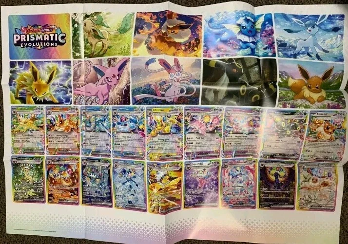 This amazing poster is a must-have for all Pokémon fans! It features the Eeveelutions in a stunning prismatic evolution design that will make your eyes pop. Measuring 39" x 26.5", this full-size poster is made of high-quality paper material that will last for years to come. Perfect for decorating your room or adding to your collection, this poster is sure to impress. Whether you're a fan of the Pokémon franchise or just love great art, this poster is a must-have. Don't miss out on the chance to own this incredible piece of pop culture art!