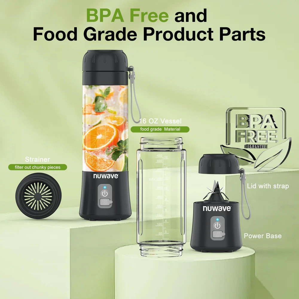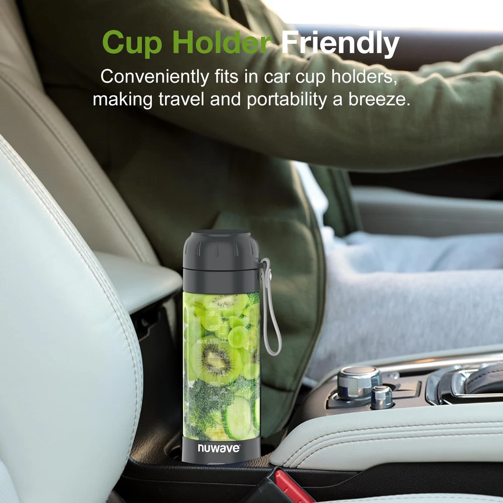 300W Smoothie Blender: Smoothie blender adopts 300 watts powerful motion motor, rotating speed to 20000 rpm, with 6-leaf stainless steel blades, easily crushing ice cubes fruits and vegetables, perfect for making nutritious, healthy shakes and smoothies only 30 seconds!(Please don't blend while charging) portable blender for shakes and smoothies. Blend And Go: Blend fruit smoothies, shakes, and your favorite icy drinks right in the 16 oz BPA-free travel jar. The personal blender jar comes with a carry loop, making it a convenient to-go cup. It’s lightweight at only 1.8 pounds, slightly less than half the weight of a 2-liter bottle of cola and fits most car cup holders. Food Grade Material: The shake blender parts are BPA free Tritan, and the blades are made of food-grade 304 stainless steel, which is wear-resistant, low-temperature resistant, healthy to ensure healthy drinking. Enjoy tasty & healthy homemade beverages everywhere. A USB charging port powers your blender for 20+ 30-second blending cycles on a full charge.** **In tests with a new, fully charged unit using 12oz of water in continuous back-to-back blending cycles, the blender completed 34 cycles before the power ran out. Results may vary depending on ingredients. Easy and Fast Cleaning: While the blending jar and lid are dishwasher-safe, we recommend a quick rinse first. Then, fill the jar with water and detergent and let the blender do the work. Remember to keep the base out of the dishwasher to extend its longevity.