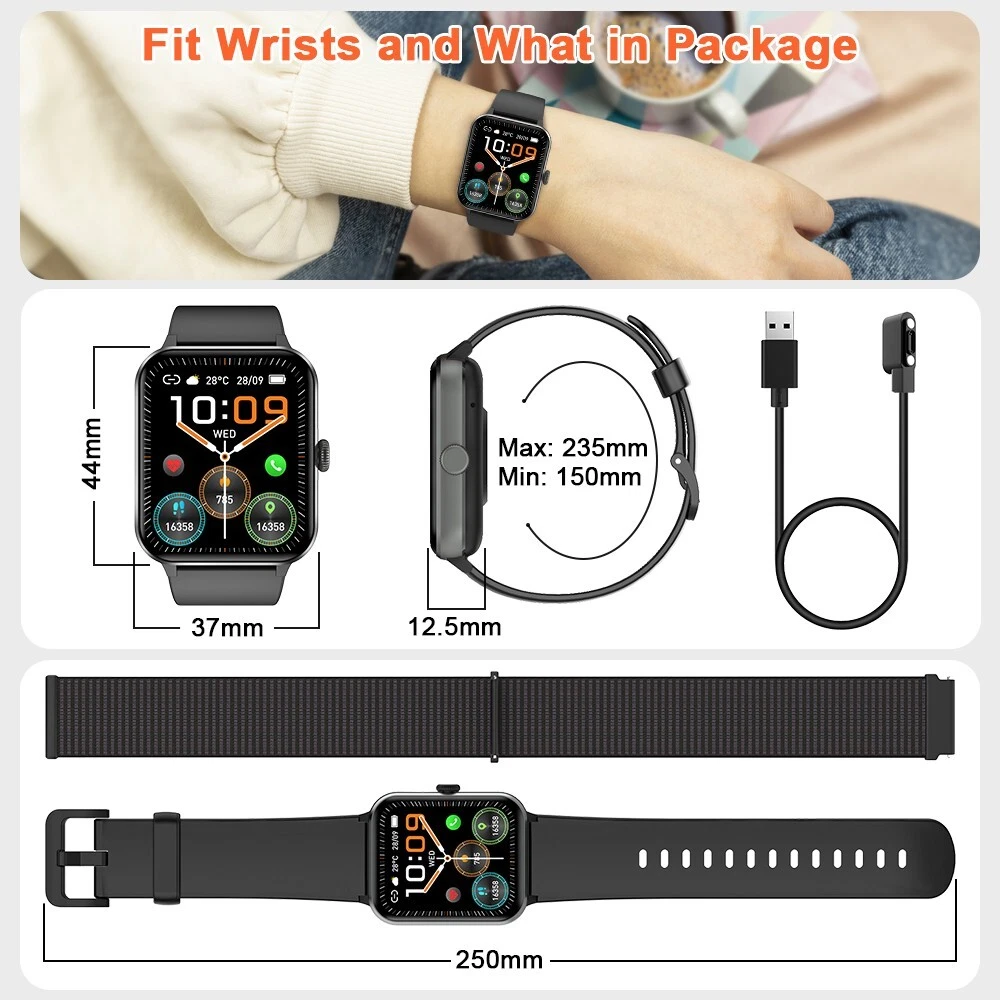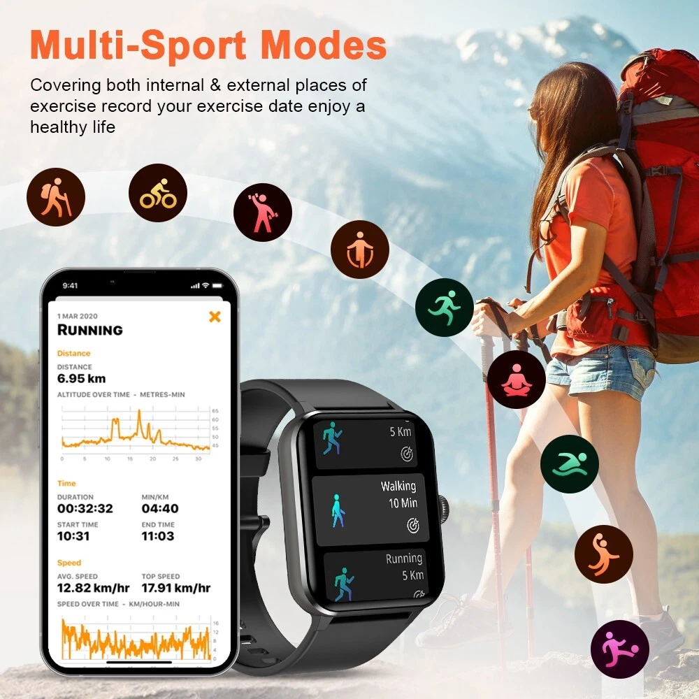 2025 Smart Watch For Men/Women, Waterproof Smartwatch Bluetooth iPhone Samsung Elevate your fitness journey with the IOWODO R50 Smartwatch, an all-in-one device designed to keep you on top of your health goals. With a robust suite of features including a heart rate monitor, blood pressure tracker, and SpO2 sensor, this watch is an indispensable tool for wellness management. The inclusion of a stress monitor aids in maintaining a balanced lifestyle, while the sleep tracker encourages restful nights. Not just a health assistant, the R50 is also a sophisticated fitness companion, offering 100 sport modes and an IP68 waterproof design for the active individual. The convenience of Bluetooth connectivity enables you to stay connected on-the-go, making calls, sending texts, and controlling your music with ease. The smartwatch is compatible with both iOS and Android systems, ensuring seamless integration with your digital life. đăAnswer/Make Calls and AI Voice AssistantăBlackview fitness watch come with built-in HiFi stereo speakers and microphone. Once connected to Bluetooth, you can directly answer or make calls through the smartwatch. The "Da Fit" app stores multiple contacts, ensuring you stay connected with family and friends anytime, anywhere. Receive real-time notifications on the smartwatch for incoming calls or messages (WhatsApp, Facebook, Instagram, etc.). Speak to the AI voice assistant for quick help, such as weather forecast, making calls, setting alarms etc. đăDIY Watch Faces & 2 Pack Watch StrapsăFashionable smartwatches for men and women are constructed from a special aluminum alloy material, which comes with two types of watch straps - Nylon watch straps and silicone watch straps. You can choose the background image for your watch face (your family, pets, or other photos that you like), and download and use it through the "Da Fit" app on the 1.85-inch full-touch HD screen. The system offers over 100 watch faces to choose from as well. đă100+ Sports ModesăWith more than 100 sports modes, this fitness tracker supports running, cycling, walking, climbing, yoga, skiing, football, and more. It tracks your daily data such as steps, time, distance, and calories, and connects to the GPS on your phone to record all your training routes and fitness using the "Da Fit" app to further motivate yourself to complete your exercise plan. It's an IP68 waterproof device that can meet your daily needs. (*NOTE: Not for sauna, hot water, swim, diving) đăMonitor Health in Real TimeăThe fitness watch for women and men uses high-performance optical sensors to monitor dynamic heart rate in real time 24/7. It can also accurately track your personal sleep and detect blood oxygen saturation and stress levels to adjust your physical condition in a timely manner. The app even offers a detailed sleep quality analysis report (light/deep/awake sleep stage), helping you adjust your lifestyle towards a healthier lifestyle. (*NOTE: This watch cannot be used as a medical diagnostic tool.) đăMore Smart ToolsăApart from the features mentioned above, this smartwatch also offers other useful daily functions such as smart notifications, music control, camera control, casual games, weather forecast, sedentary reminders, alarm clock, stopwatch, timer, etc. Compatible with most Android 6.0 and iOS 9.0 or above smartphones, it comes with a built-in large capacity battery of 350mAh, which ensures up to 7 days of use and approximately 30 days of standby with just 2 hours of charging. đ Fantastic Gift for Your Family and Friendsđ Packing List: 1 x Smart watch 1 x Replacement strap 1 x Charging cable 1 x User Manual Operation guidance: MPN Does not apply Brand IOWODO Series Smartwatch Case Color Black Band Color Black Band Material TPU Manufacturer Warranty 3 Months Network Bluetooth Model R50 Case Size 22 mm Operating System Android Wear Features Bluetooth Enabled, Fitness Tracker, Heart Rate Monitor, Sleep Monitor, 100 Sports Modes, 2Pack Watch Bands(Silicone+Nylon), Aluminum alloy case, Answer/Make calls/Quick Text Reply/AI Control, IP68 Waterproof, Notifications, SpO2, Stress Monitor, alarm, calculator, calendar, games, menstrual cycle tracker, music control, remote control to take photos on your phone, sedentary and drink water reminder, stopwatch, timer, weather Storage Capacity <1GB Compatible Operating System Android, iOS - Apple Case Material Aluminum alloy Country/Region of Manufacture United States