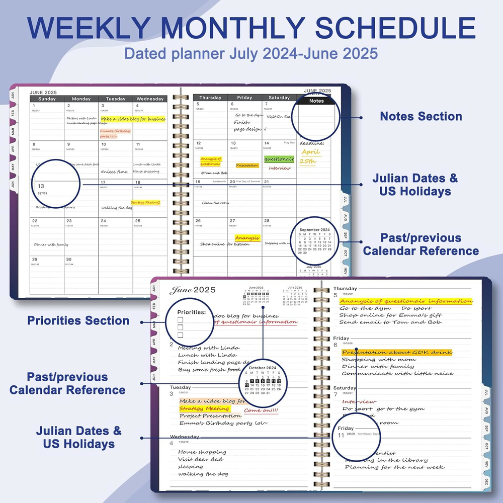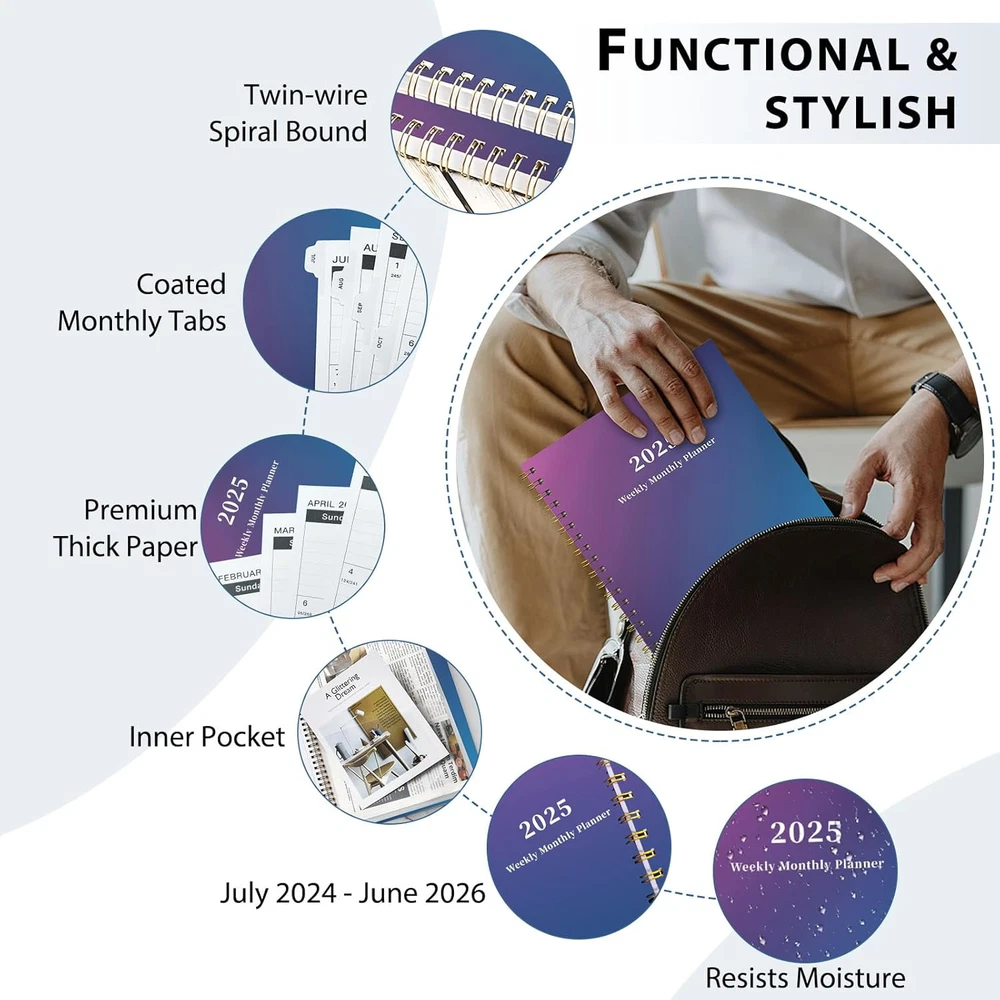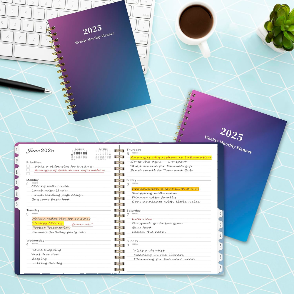 2025 Spiral Bound Monthly Planner 8.5x11 Blue Purple 12 Months for School Office Work