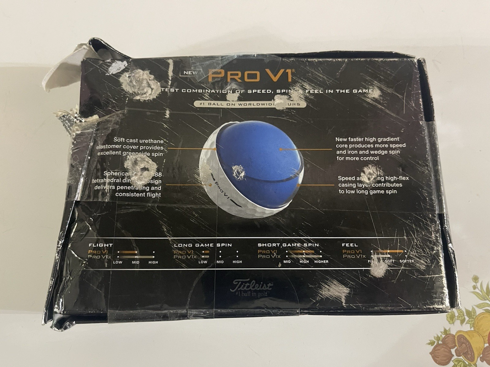 Titleist Pro V1 Golf Balls, 1 Dozen (12 Balls) White-#1,2,3,4 NEW! Item is brand new. Box is very beat up and taped. Please SEE PHOTOS for item condition.