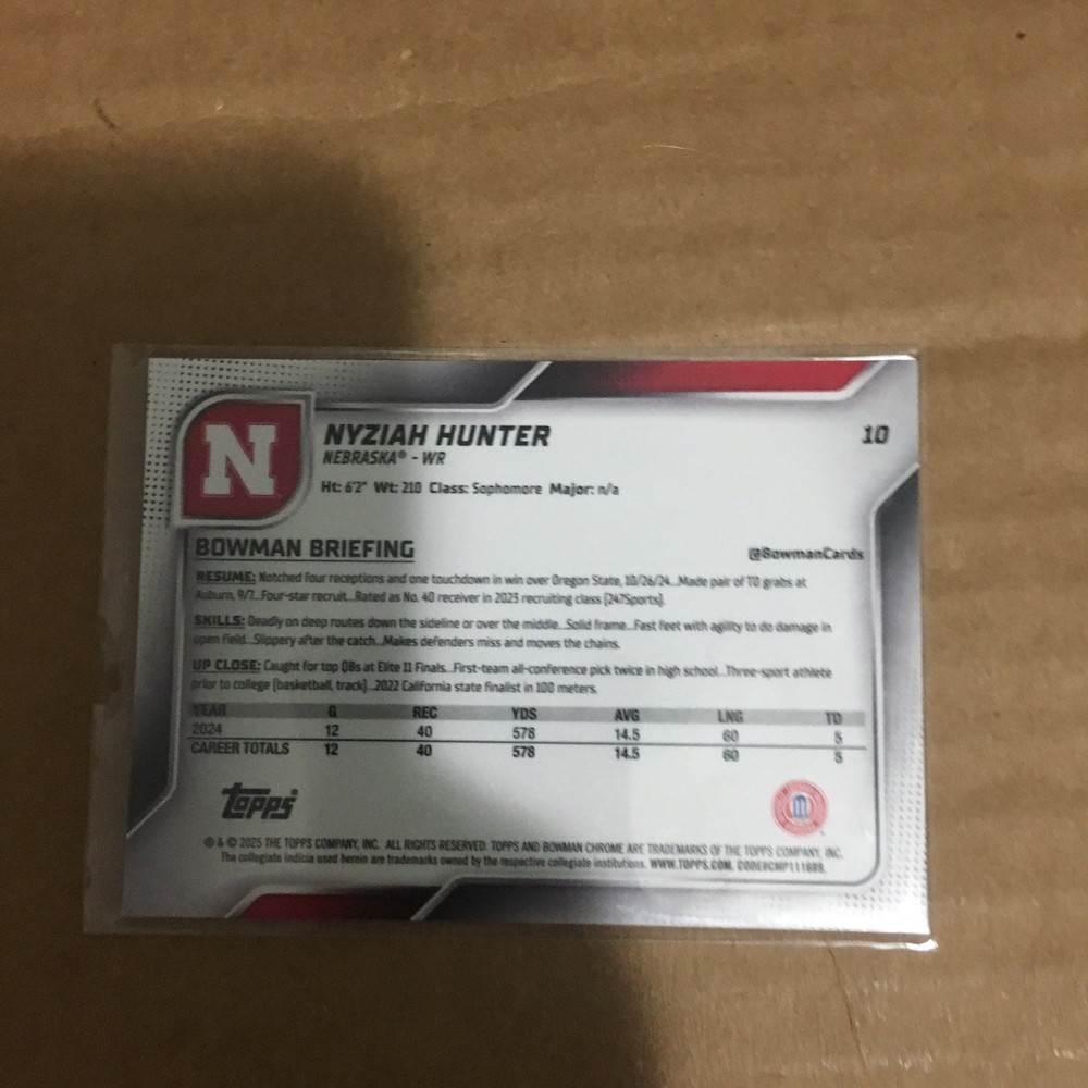 2025 Topps Bowman Chrome U Nyziah Hunter 1st Bowman