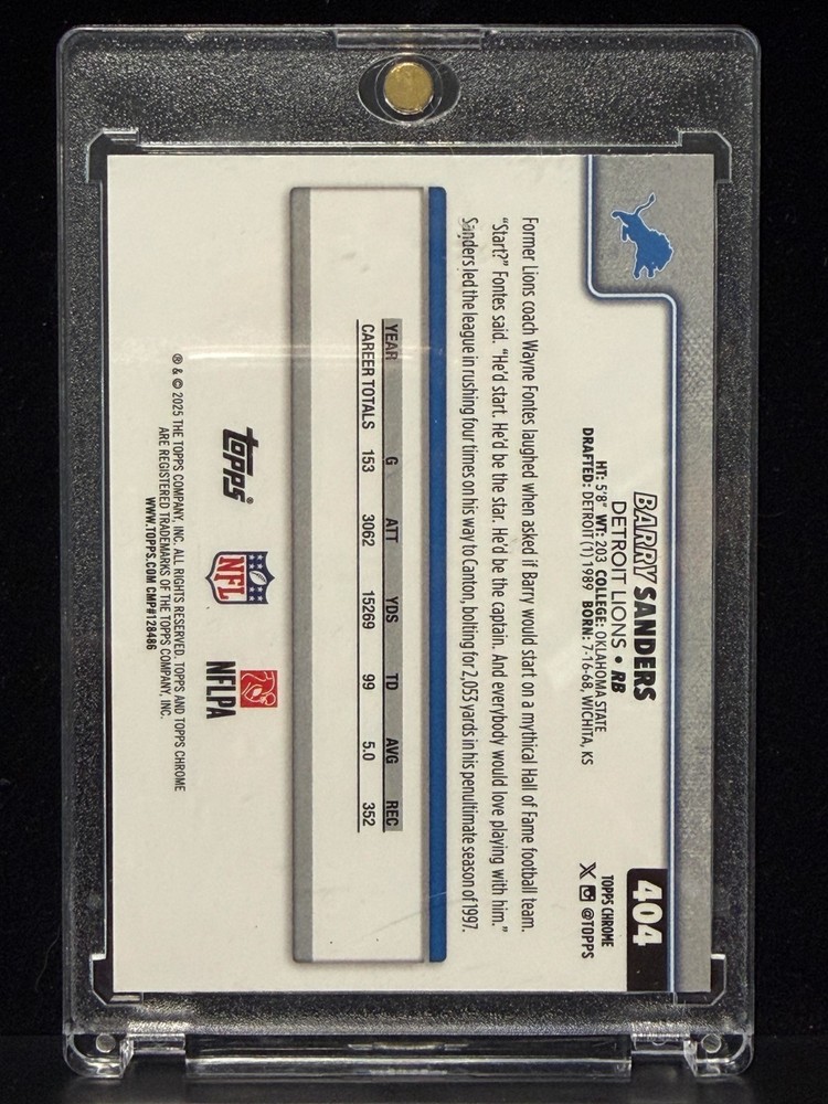 Home2025 Topps Chrome Barry Sanders #404 Refractor Variation SP Lions
