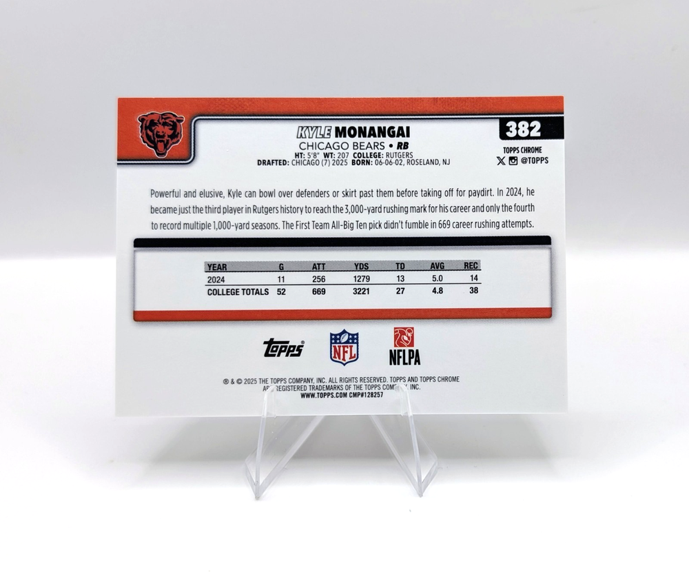 2025 Topps Chrome Football Kyle Monangai - Chicago Bears Rookie Leather Football Gold Serial Numbered /50