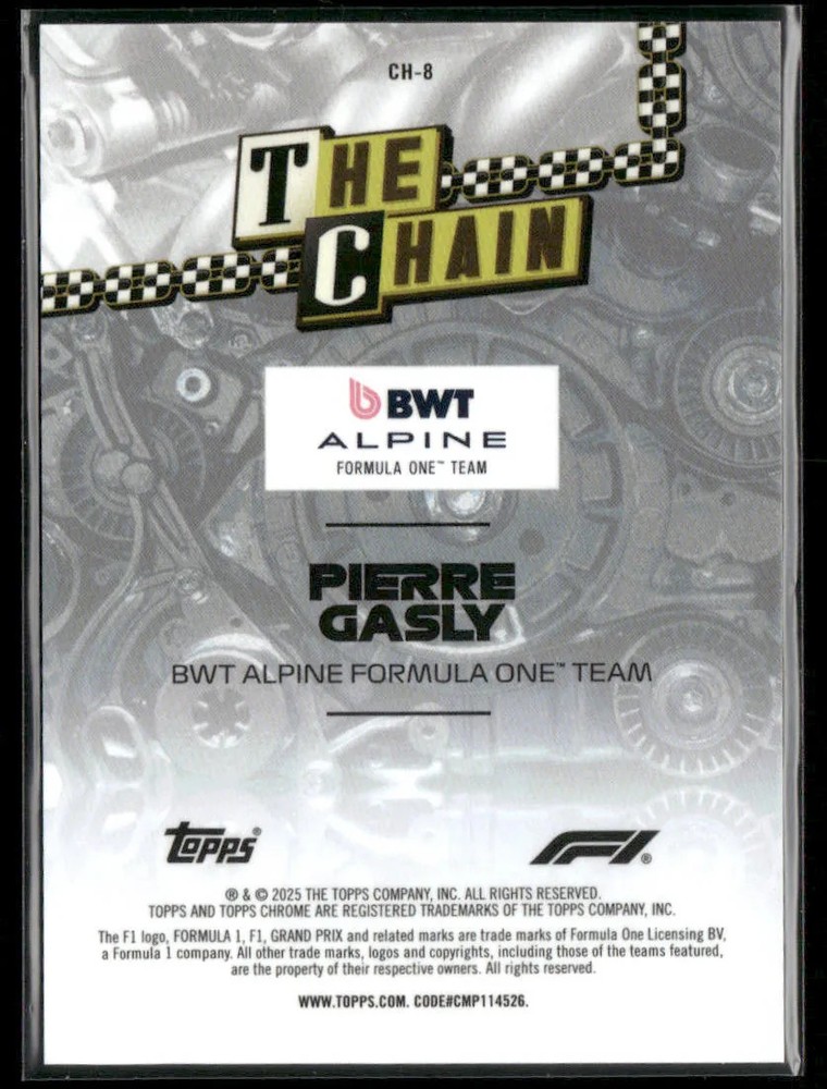 You are purchasing a 2025 Topps Chrome Formula 1 The Chain Pierre Gasly #CH-8 Refractor. You will receive the exact item in the photographs. Thank you for looking. COMBINED SHIPPING: We offer combined shipping on all items, after first auction won, each item after will be 0.50 extra. Please make sure to wait for payment till you receive an invoice. Paying before invoice will not give you the discount. LOCAL PICKUP: We offer local pickup for all items, at checkout make sure to select local pickup. Listed With Mascot .