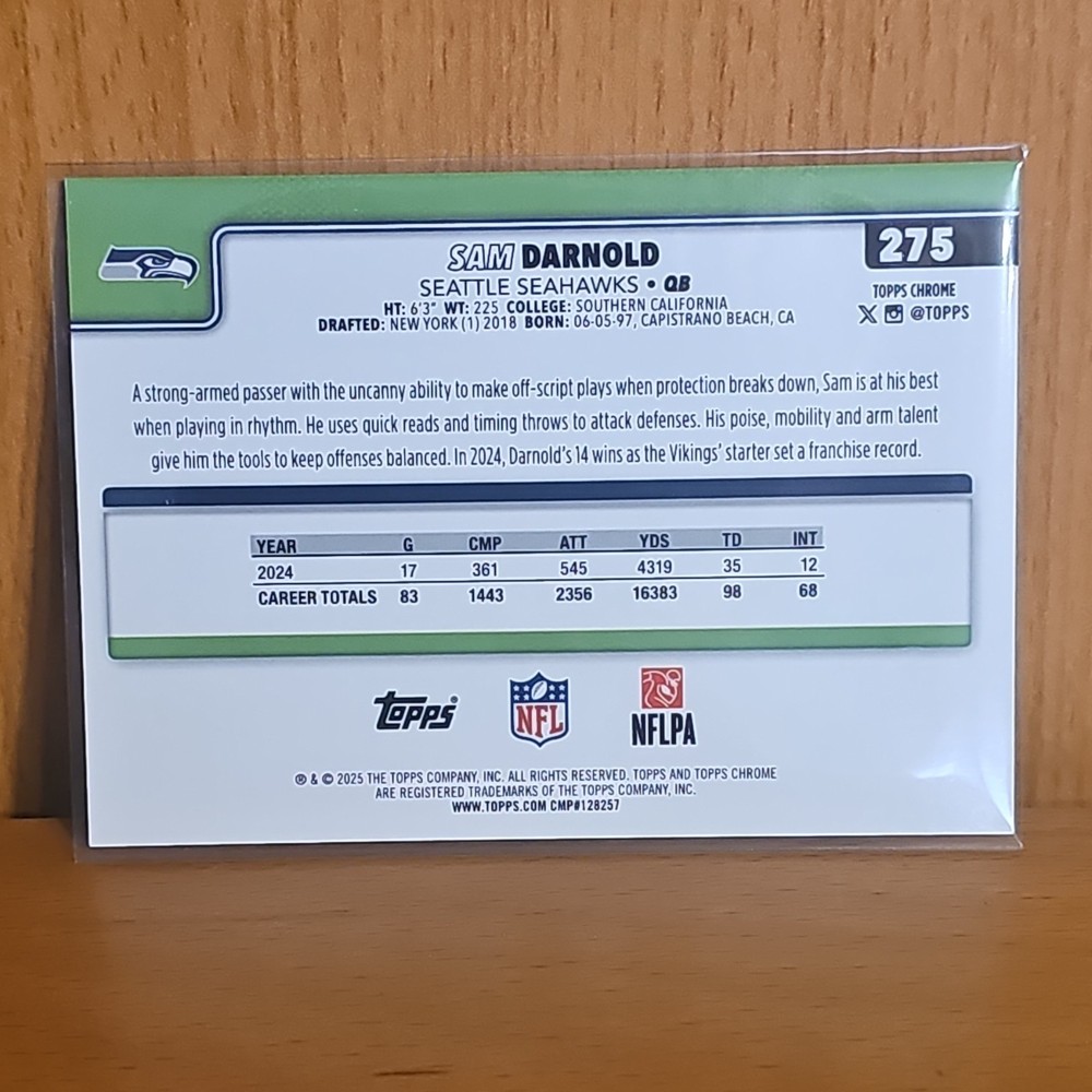 2025 Topps Chrome Sam Darnold Seattle Seahawks Serial Numbered 50 #275 NFL