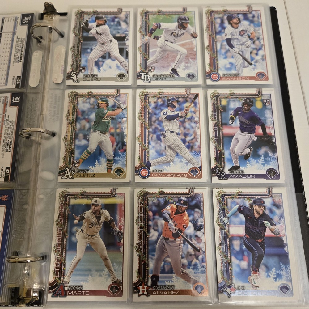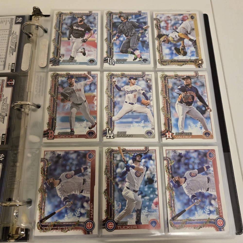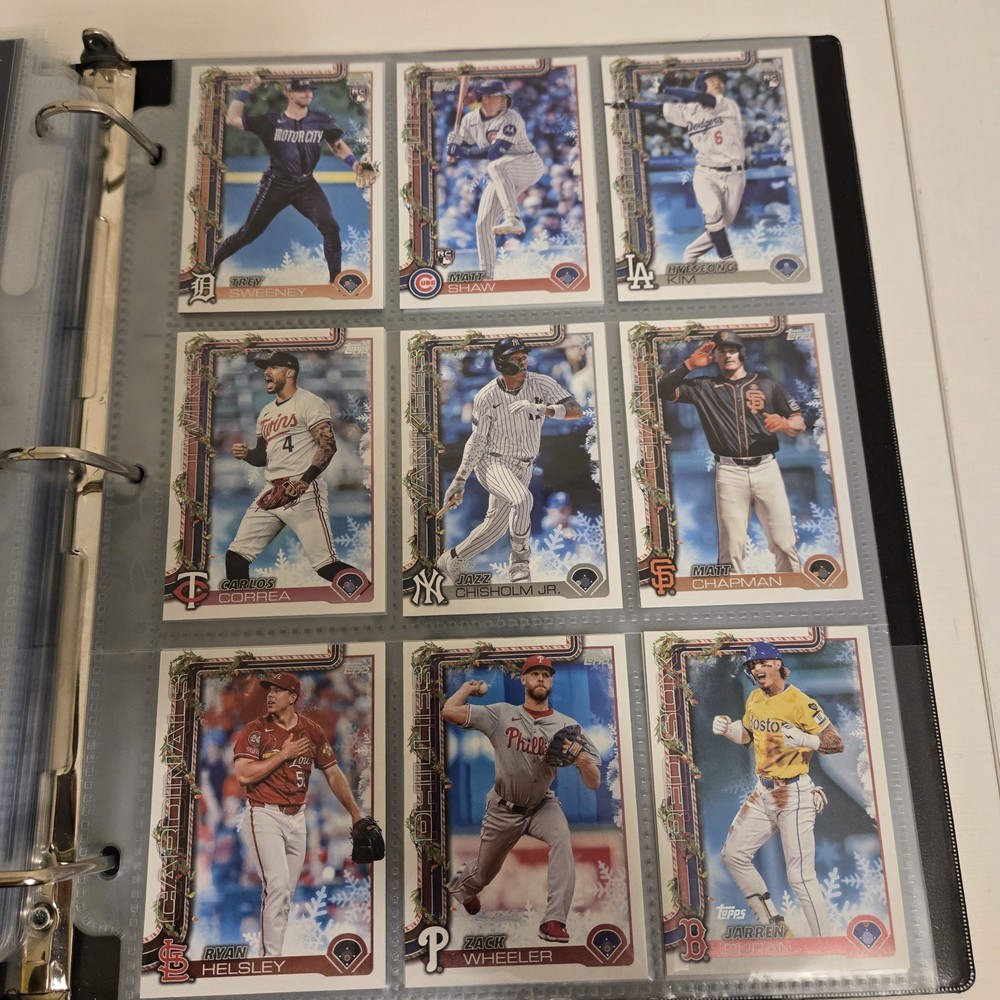 Complete 2025 topps Holiday baseball ⚾️ set from H1 to H200 total of 200 cards including both Ohtani cards H1 and H200. Will come sleeved in the sheet protector including binder. All cards are in Mint to Near mint condition🔥