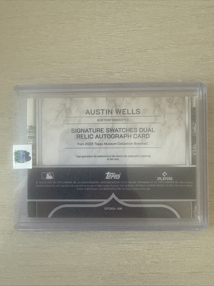 Set:2025 Topps Museum CollectionPrint Run:50Player/Athlete:Austin WellsAutographed:YesTeam:New York YankeesSeries:Topps Museum CollectionFeatures:Insert, Memorabilia, Serial Numbered, Parallel/Varietybrand:ToppsLeague:Major League Baseball (MLB)Sport:BaseballInsert Set:Single-Player Signature Swatches Dual Relic AutographsParallel/Variety:GoldCard Number:SPDRA-AWSeason:2025Manufacturer:Topps