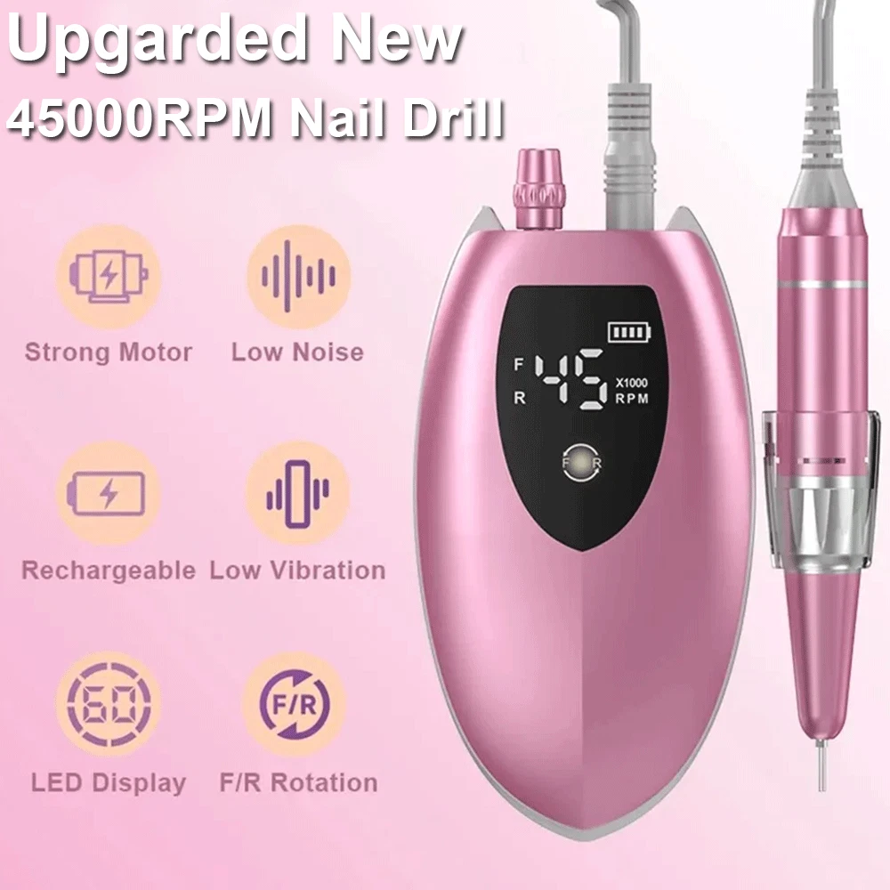 2025 Upgarded 45000RPM Electric Nail Drill Machine Portable Manicure Pedicure BK
