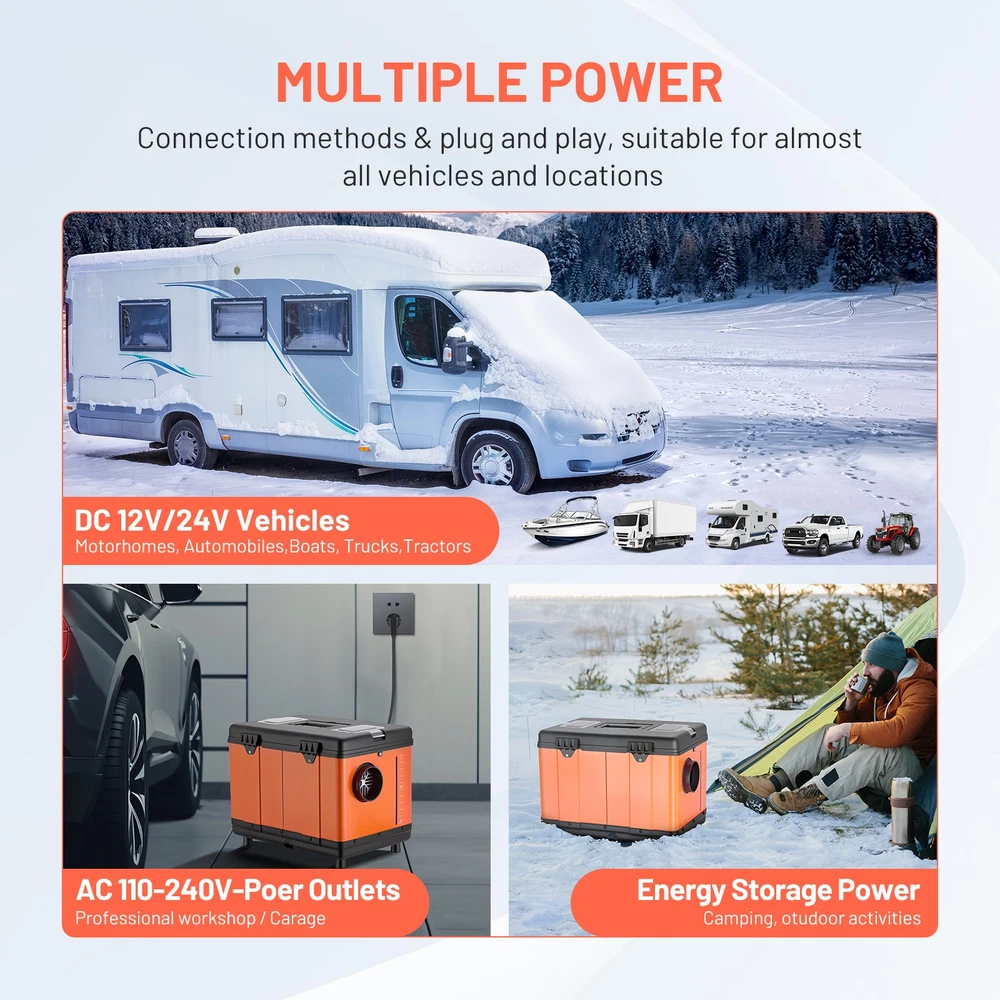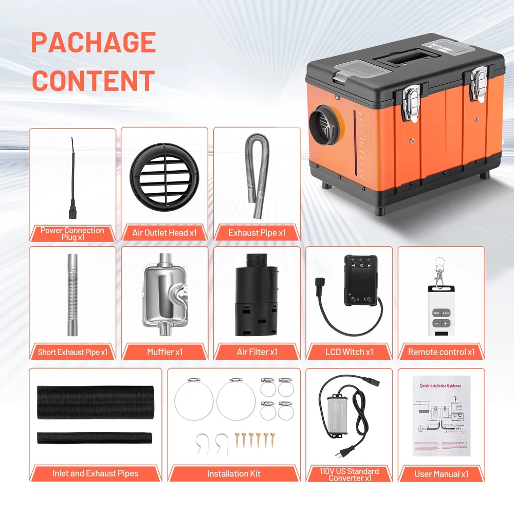 2025 Upgrade 8KW Diesel Heater 12V/24V DC & 110V AC W/ bluetooth Parking Heater Diesel Air Heater Description: Key Features: 1. Preheat the engine coolant to avoid engine wear started at low temperature and defrost the glass. 2. It has low noise and keeps the in-car temperature among a suitable range and helps you drive safely in cold winder. 3. It enables to control the diesel air heater in a long distance for preheating and adjustment. 4. Eco-friendly product, low fuel and power consumption, suitable for longer periods of operation. 5. LCD display makes it convenient to monitor the working status of the heater at anytime. 6. All in one unit, compact and space-saving, easy to install and remove. 7.Material: plastic & aluminum 8.High-quality reinforced ignition plugs 9.High-quality reinforced pure copper fuel pump 10. Bluetooth display 11.B1003 wide-voltage motherboard 12.High-quality black steel motor 13.310S combustion chamber (high quality, more complete diesel combustion, durable) Note: - It is normal that the ignition fails when the first time you start the machine, because the oil pipe of the oil circuit is in the vacant state at that time. Please restart and the machine will work normally. - Remote control needs to be set before use. - Please confirm the car battery voltage before purchasing. - If you have any concerns, please do not hesitate to contact us. Compatible Models and Years: - For all types of diesel mechanical vehicles, such as cars, buses, RVs, trucks, construction vehicles, etc. Specifications: * Condition: 100% Brand New * Heater Power : 8KW * Fuel: Diesel (5L) * Voltage: DC12V/24V / AC110V * Material: Metal & Aluminum * Car Air Conditioning Type: Heating * Switch Type: LCD Switch * Remote Control Distance: 100m(Without Obstacle) * Radiator Working Temperature: -40℃~+50℃ * Operating Temperature of the Oil Pump: -40℃~+40℃ Package Includes : Notice : *Due to the manual measurement and different measurement methods, please allow 1-3cm deviation. *Professional installation is highly recommended. *For any needs please contact us. *Please contact us if you need installation video Payment Delivery details Terms of sales About us Contact us Payment 1.We only accept PayPal. PayPal is the only online payment method we accept. Please make sure you have a valid/confirmed PayPal account prior bidding. 2.All Paypal Payments must be Confirmed. Payment must be made within 48hrs of the auction end time. Non-Paying bidders will be reported. 3.When you get your package,maybe you will pay some charges, it's taxes for local customs,not pay to us, and the fees are depends on the customs, all buyer are same. Delivery details 1.Items will be shipped within 2 business days after payment is received. 2.We ship to your eBay address. Please make sure your eBay address is correct. Buyer takes responsibility if eBay address is wrong. 3.Import duties, taxes and charges are not included in the item price or shipping charges. Please check with your country customs office for these additional charges. 4.We shipping using UPS or USPS from our nearest warehouse to you. Tracking numbers will be emailed upon shipment. Terms of sales 1.Please feel free to email us if you have any question. 2.We appreciate you contact us via eBay message when you are not satisfied rather than open case or leave negative feedback directly. We'll try our best to solve the issue. 3.Refund will be issued once we receive your returned items. Buyer is responsible for all return shipping charges. 4.Please contact us for return process before you return the item. 5.All items for exchange or refund must be returned in "as new" condition. About us We are the responsible seller ,always provide high-quality products and best service .If you have any questions, please contact us, and will try our best to help you. Please contact us by eBay Message, and we will reply you within 24 hours. Thank you very much! Contact us We are the professional auto parts manufacturer , and provide line lock, AN hose end fittings , fuel line , fuel filter , fuel regulator , exhaust cutout , exhaust tips , exhaust muffler and so on .The quality of the product to be secured. If you have any questions or any needs , please contact us , and will try our best to help you.