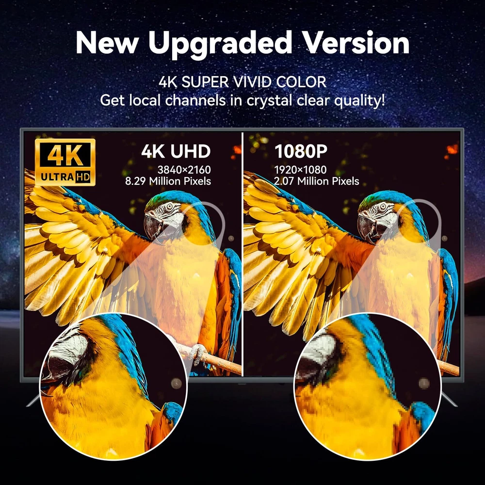 Never Pay Monthly Bill - Say goodbye to expensive traditional cable bills with our new upgraded high technology TV antenna. It's compatible with TV converter boxes and hundreds of digital Televisions/4K Ultra high definition (4K UHD), offering access to a plethora of HD channels including CW, Fox, AMC, ABC, Hulu, Netflix, ESPN, CBS, NBC, PBC and more. You can watch news/movies and any your favorite programs, enjoy free for life HD local channels, can save up to $3,000 a year! Up To 980 Miles Range Reception - TV antenna support super distance 980 miles reception and 360° reception around your HDTV. You can receive stable signals even in bad weather! Advanced signal booster optimize the signal transmission protection against interference with other signals, which can make sure you can get more channels even you are far away broadcast towers. Please switch the amplifier to "short range" if your house is very close to the broadcast tower (within 35 Miles). Full HD Crystal TV & Upgraded Smart IC Chip - Adopted powerful amplifier signal controller, built-in newest generation smart IC chip and crystal clear filter technology to pick up signals. The new technology filters out cellular and FM signals resulting in clearer pictures, low noise and access to more free broadcast TV signals with enhanced gain, range and frequency performance. No monthly contract and potentially save thousands of dollars a year! 35FT Coaxial cable & Easy to Install - Extra long high performance coaxial cable ensures Antenna can be placed anywhere in your home for the best signal and the strongest reception. Connect the antenna to 'Ant In' On the back of any HDTV Place the antenna in the desired location and scan for channels on your television menu. NOTE: Please re-scan for channels after each moving the tv antenna. Please visit "dtv gov maps'' information for the available channels in your location. 100% Satisfaction Guaranteed - We rigorously test our products to ensure top performance and provide lifetime professional technical team support! We are trying our best to make every customer satisfied, we will provide intimate service, if you aren't satisfied for any reason or have any questions about the product, please contact us when you receiving your antenna, we will give the best solution.
