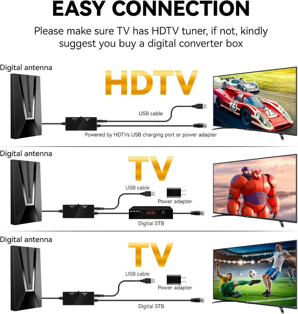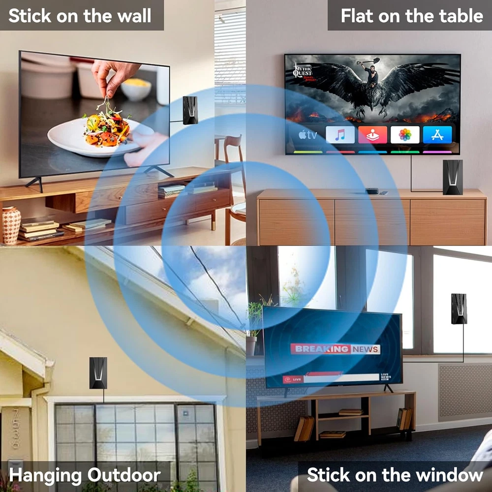 Store New Arrivals Add to Favorite View Feedback Contact 2025 Upgraded HD TV Antenna 980+ Miles Range Indoor Outdoor Digital TV Antenna Description Item Weight 1.19 pounds Number of Items 1 Antenna Television Country of Origin USA Maximum Range 5174400 Feet Number of Channels 999 Impedance 75 Ohm Package Dimensions 8.74 x 5.24 x 2.68 inches MPN Does Not Apply Never Pay Monthly Bill - Say goodbye to expensive traditional cable bills with our new upgraded high technology TV antenna. It's compatible with TV converter boxes and hundreds of digital Televisions/4K Ultra high definition (4K UHD), offering access to a plethora of HD channels including CW, Fox, AMC, ABC, Hulu, Netflix, ESPN, CBS, NBC, PBC and more. You can watch news/movies and any your favorite programs, enjoy free for life HD local channels, can save up to $3,000 a year! Up To 980 Miles Range Reception - Veaxetu TV antenna support super distance 980 miles reception and 360° reception around your HDTV. You can receive stable signals even in bad weather! Advanced signal booster optimize the signal transmission protection against interference with other signals, which can make sure you can get more channels even you are far away broadcast towers. Please switch the amplifier to "short range" if your house is very close to the broadcast tower (within 35 Miles). Full HD Crystal TV & Upgraded Smart IC Chip - Adopted powerful amplifier signal controller, built-in newest generation smart IC chip and crystal clear filter technology to pick up signals. The new technology filters out cellular and FM signals resulting in clearer pictures, low noise and access to more free broadcast TV signals with enhanced gain, range and frequency performance. No monthly contract and potentially save thousands of dollars a year! 35FT Coaxial cable & Easy to Install - Extra long high performance coaxial cable ensures Antenna can be placed anywhere in your home for the best signal and the strongest reception. Connect the antenna to 'Ant In' On the back of any HDTV Place the antenna in the desired location and scan for channels on your television menu. NOTE: Please re-scan for channels after each moving the tv antenna. Please visit "dtv gov maps'' information for the available channels in your location. 100% Satisfaction Guaranteed - We rigorously test our products to ensure top performance and provide lifetime professional technical team support! We are trying our best to make every customer satisfied, we will provide intimate service, if you aren't satisfied for any reason or have any questions about the product, please contact us when you receiving your antenna, we will give the best solution. Product Description ADVANCED TOOL FOR LIFE - RECEIVE CHANNELS WITHOUT A MONTHLY BILL! With Veaxetu upgraded TV antenna, you don’t have to pay high monthly cable or satellite bills! Our HD antenna receives FULL HD channels like ABC, CBS, NBC, PBS, Fox, and many more. With the amplified TV antenna, you can access content in your area, including popular over-the-air TV shows, news, sitcoms, kids' programs, sports, and more. Using the latest Smart IC Chip and upgraded filter technology, it filters out cellular and FM signals for a clearer picture with minimal noise. Say goodbye to expensive cable fees! Our TV antenna can help you save up to $3,000 per year and enjoy more free TV programs! ENJOY 1080P 4K CRYSTAL TV CHANNELS FOR FREE WITH THE HDTV ANTENNA! Are you still feeling annoying about weak signals and blurred pictures? Our HDTV antenna supports a variety of HD signal transmission such as 720p, 1080i, 1080p 2K and even 8K 4K HD. This truly HDTV antenna brings you genuine high quality daily life! With this Indoor TV antenna, you can enjoy your favorite TV shows at any time. The 1080P and 4K HDTV reception ensure that you always have the highest quality content, most vivid colors incredible sound, ultra clear picture, and stable playing. Less money, enjoy more happiness with the Veaxetu indoor digital antenna! 980+ MILES LONG RANGE TV ANTENNA - BUILT IN POWERFUL AMPLIFIER With new type switch control amplifier booster, Get access to the content available in your area, including the most popular over-the-air TV shows. It is compatible with HDTV of various digital terrestrials (DVBT, ISDB-T, DMB-T/H, ATSC) and DAB/FM radios. Depending on your location, the HDTV antenna can receive include NBC, FOX, CBS, ABC, PBS, THE CW, QUBO, TELEMUNDO, UNIVISION, RTV, THIS TV, ION, ME TV, the weather channels and so much more. You can watch HD digital TV without using the Internet, and it can be used normally in thunderstorm! With 360-degree Omni-directional reception, this portable HDTV Antenna can pick up signals both in horizontal and vertical direction, which is different from the traditional leaf tv antenna that needs to aim to the broadcast tower for optimal reception. Veaxetu TV ANTENNA MAKES YOUR DAILY LIFE BETTER! This TV antenna connects directly to your TV and includes a high-quality long coaxial cable, allowing you to place the antenna anywhere you like. Lightweight design makes it easy to carry while traveling, so you can enjoy free local channels even in your RV! EASY TO INSTALL IN JUST 3 MINUTES! 1. Connect the 'ANT/IN 'cable to the 'ANT/IN 'ports back of television, then power the antenna by plugging the USB connector to the back of HDTV or into outlet with power adapter. 2. Put it high on wall; Lay flat on table; Place it higher on window (Highly recommended). Three optional installation methods, including nail on the wall, sticks on the window or place on the tabletop with bracket. Vertical or horizontal placement is allowed! 3. Scan for channels using your TV's Channel Search and enjoy free Full HD TV. Do not forget to make a search to select the Short Range or Long Range. You should try different places in the room. Always re-scan channels after moving and turning the indoor antenna. You will get a better result by connecting different channels. You’ll also wa