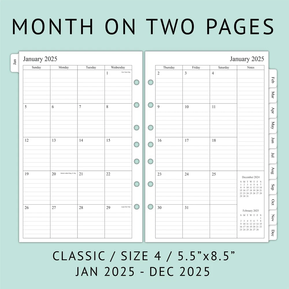 2025 Weekly & Monthly Planner Refill, 5-1/2" X 8-1/2", Runs from January 2025 to