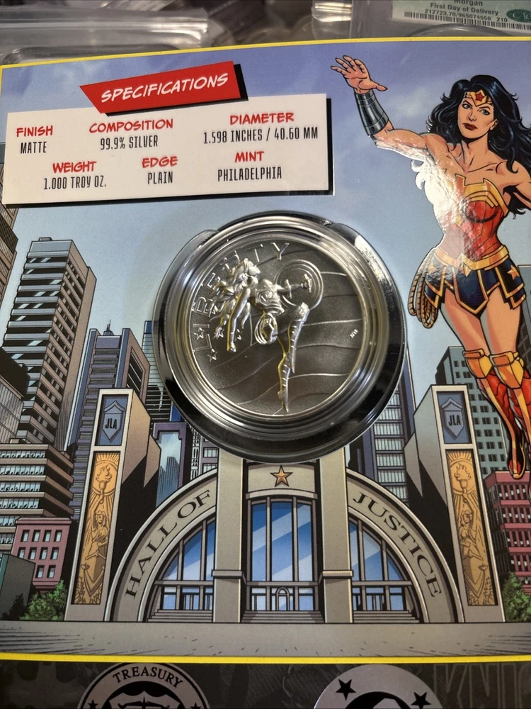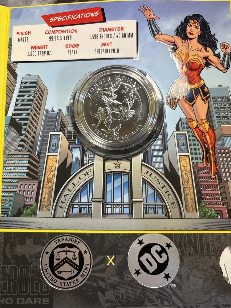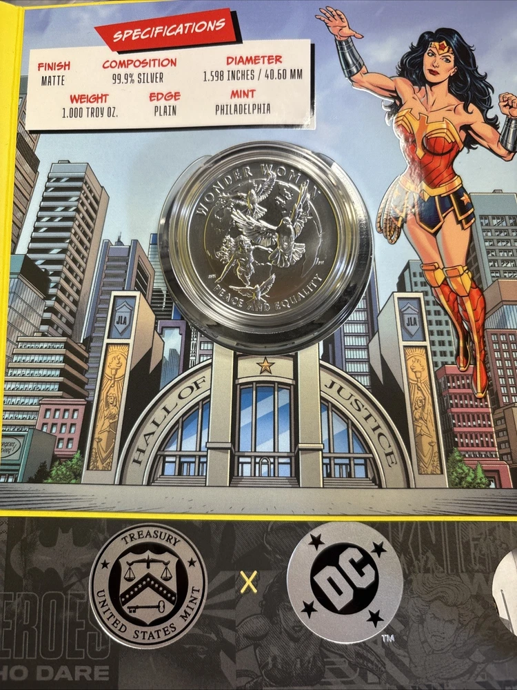 IN HAND - READY TO SHIP For sale is one (1) 2025 Wonder Woman Comic Art Silver One ounce Medal from the United States Mint Comic Art Program. 2025 Wonder Woman one ounce Silver Comic Art medal Part of the U.S. Mint Comic Art Program Minted at the Philadelphia Mint Includes Certificate of Authenticity COA Condition: The medal is in excellent condition and will come with original U.S. Mint packaging and COA. Features themed Wonder Woman designs on both sides. Shipping: FREE shipping with tracking and insurance. Your item will be securely packaged for safe delivery.