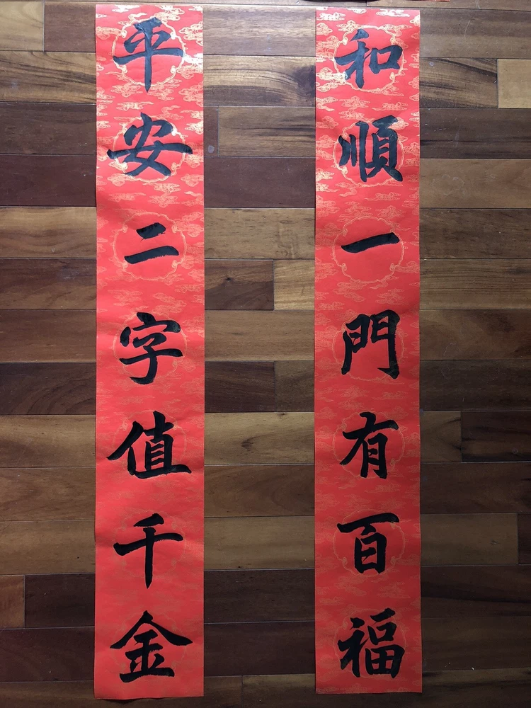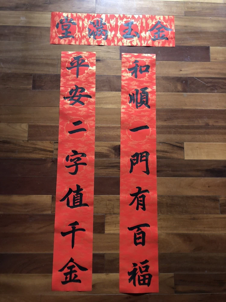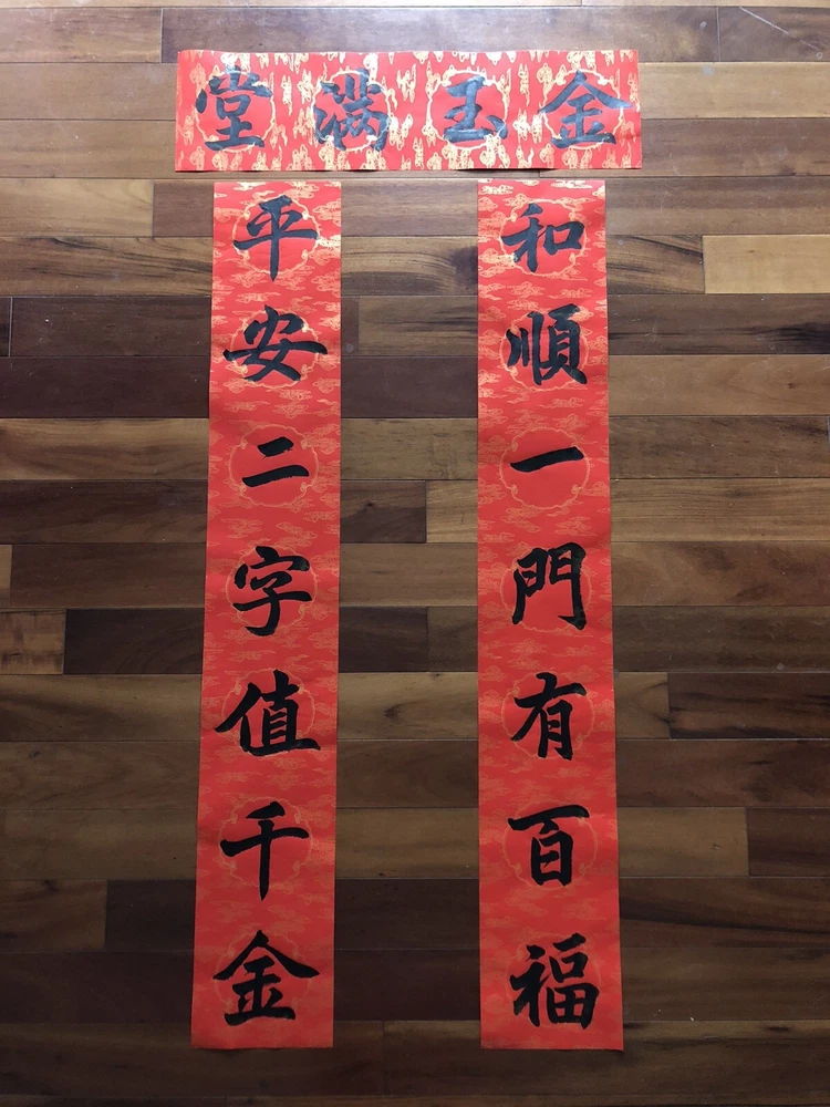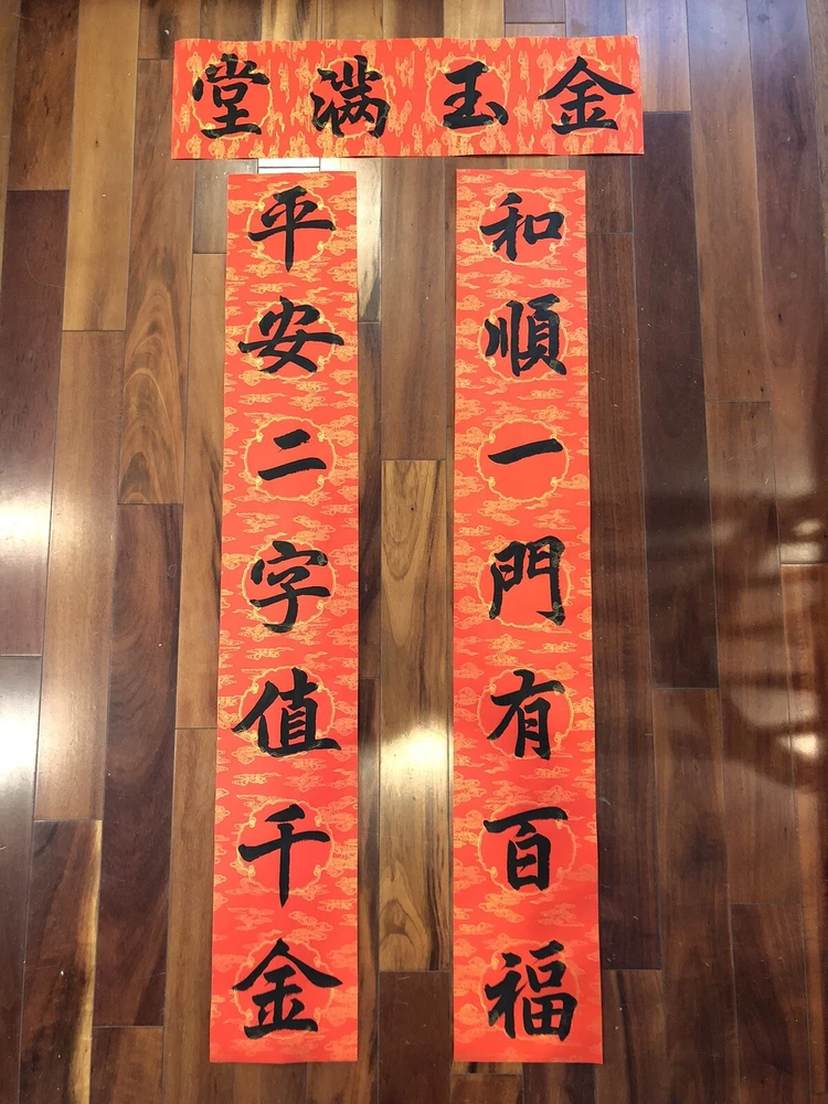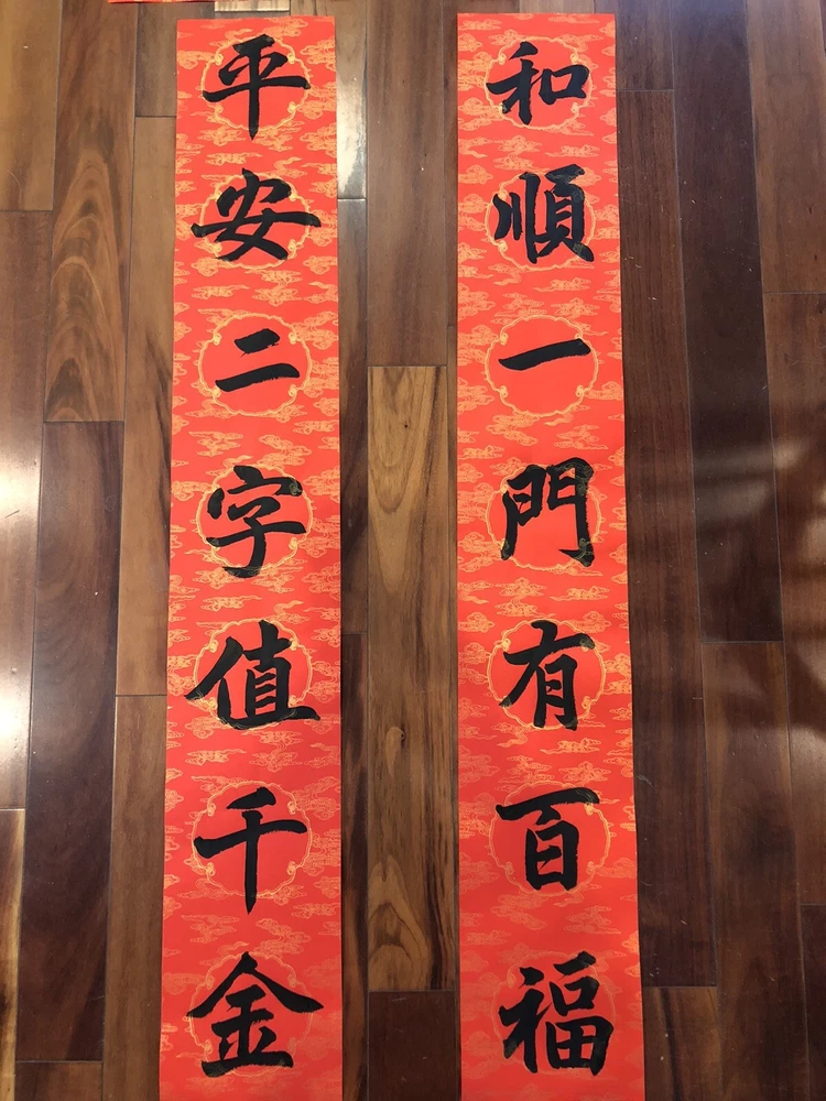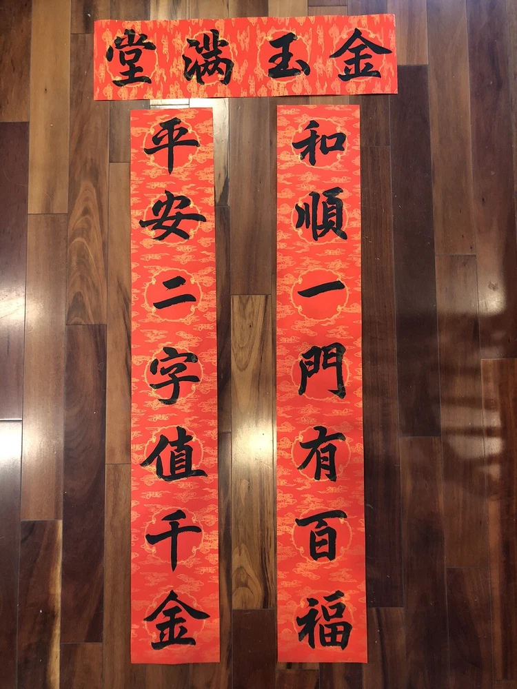 2025 Year of Snake Handwritten Set Of 3 Couplets Wall Decorate蛇年3件手寫春聯.春09和順一門. Hand written Not Printed. Condition is New. Greetings for Chinese New Year. Wall and door Decorations. Shipped with USPS Ground Advantage. What is written: Right: 和順一門有百福(family smoothie brings good luck) Left: 平安二字值千金 (family safe is priceless) Up: 金玉滿堂 (family is full of wealth) Calligraphy style: freehand scripts 行書 Materials: black ink on red paper with gold patterns printed Size of paper: Long paper 43”x 6.7” Short paper 24.9” c 6.7” Year of production: 2024 Others: 1. This is an unframed work which is designed for Chinese New Year celebration. This is a wall and door decoration. 2. The couplets will be rolled up and wrapped with bubble sheets. No folding. 3. You will receive 3 pieces of red paper with Chinese calligraphy written on it. 4. Postage is automatically estimated by eBay. Final sales no return no refund. Thanks for watching! *Introduction to the calligrapher: Hello, my name is Anita Hsin Hao Wang. I am from Taipei, Taiwan. I currently live in Thousand Oaks, California, with my family. I nickname myself Houde for the convenience of writing. I started learning calligraphy when I was 8 years old. I practiced Ouyang Xun's regular script and official script with great success. I have participated in county and local calligraphy competitions and won numerous awards since the fourth grade of elementary school. After that, I practiced running script and Wei Bei by myself, so I have some experience in regular script, Official script and Wei Bei. Now doing Chinese calligraphy every day has become my best way to relieve stress besides taking care of my family