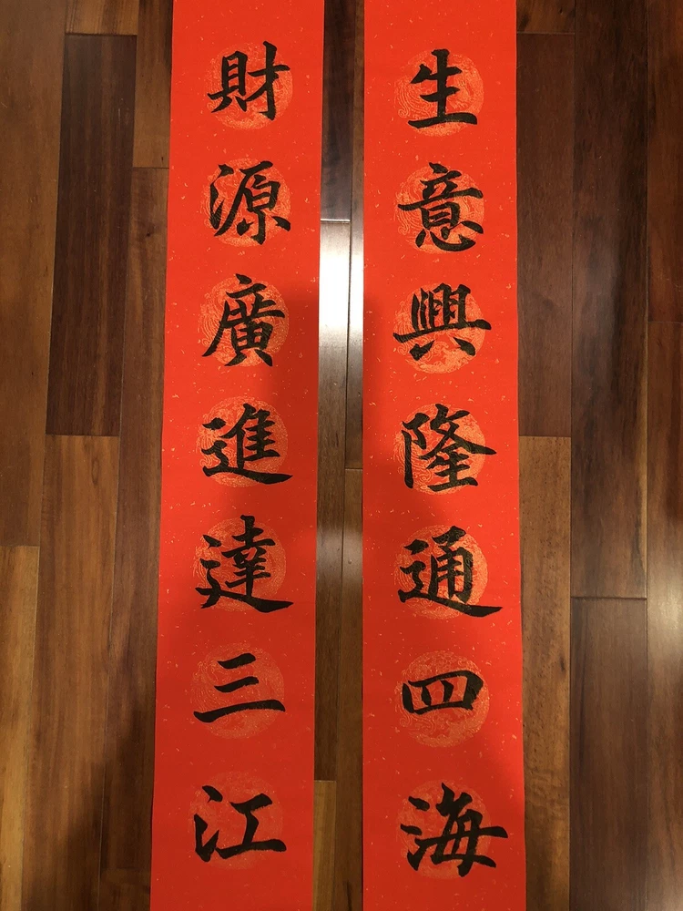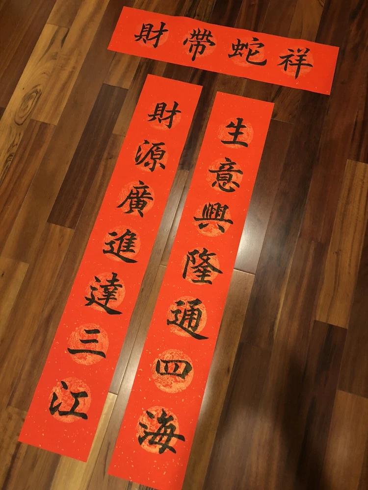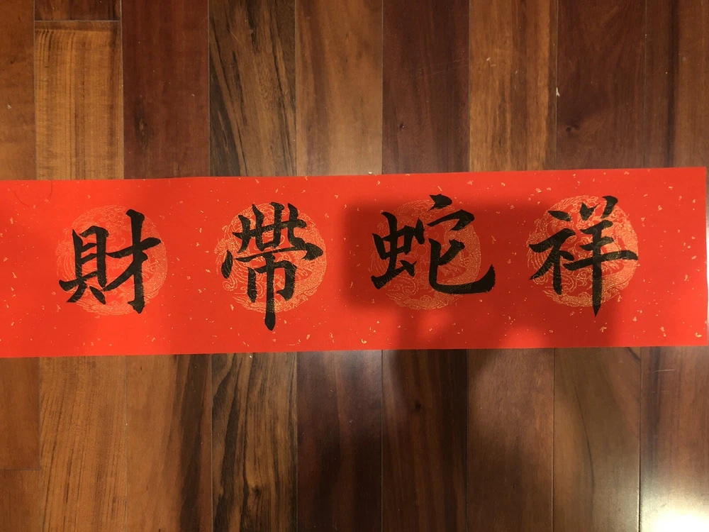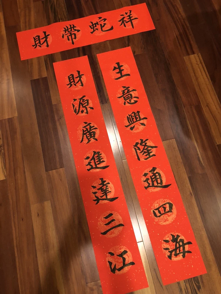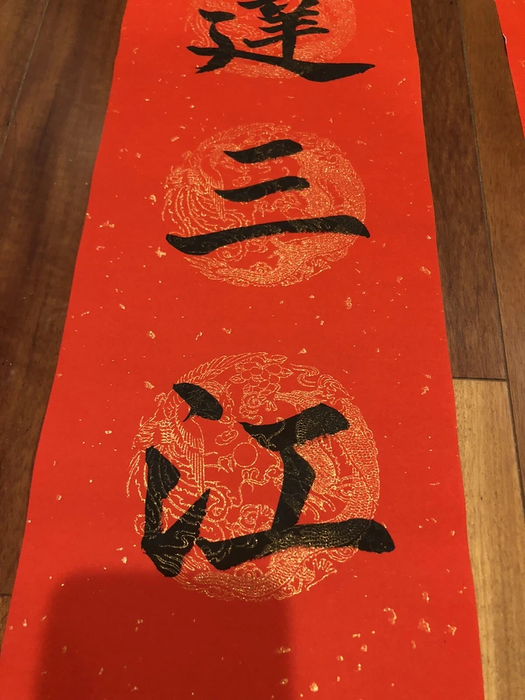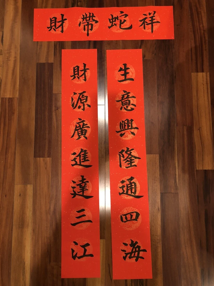 2025 Year of Snake Handwritten Set Of 3 Couplets Wall Decoration蛇年3件手寫春聯. 春13生意興隆. Hand written Not Printed. Condition is New. Greetings for Chinese New Year. Wall and door Decorations. Shipped with USPS Ground Advantage. What is written: Right: 生意興隆通四海 (good business comes from all over the world) Left: 財源廣進達三江 (wealth comes in from all over the country) Up: 祥蛇帶財 (Lucky snake brings you good wealth) Calligraphy style: running scripts 行書 Materials: black ink on red paper with gold patterns printed Size of paper: Long paper 41”x 6.7” Short paper 27”x 6.7” Year of production: 2025 Others: 1. This is an unframed work which is designed for Chinese New Year celebration. This is a wall and door decoration. 2. The couplets will be rolled up and wrapped with bubble sheets. No folding. 3. You will receive 3 pieces of red paper with Chinese calligraphy written on it. 4. Postage is automatically estimated by eBay. Final sales no return no refund. Thanks for watching! *Introduction to the calligrapher: Hello, my name is Anita Hsin Hao Wang. I am from Taipei, Taiwan. I currently live in Thousand Oaks, California, with my family. I nickname myself Houde for the convenience of writing. I started learning calligraphy when I was 8 years old. I practiced Ouyang Xun's regular script and official script with great success. I have participated in county and local calligraphy competitions and won numerous awards since the fourth grade of elementary school. After that, I practiced running script and Wei Bei by myself, so I have some experience in regular script, Official script and Wei Bei. Now doing Chinese calligraphy every day has become my best way to relieve stress besides taking care of my family