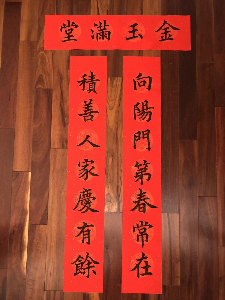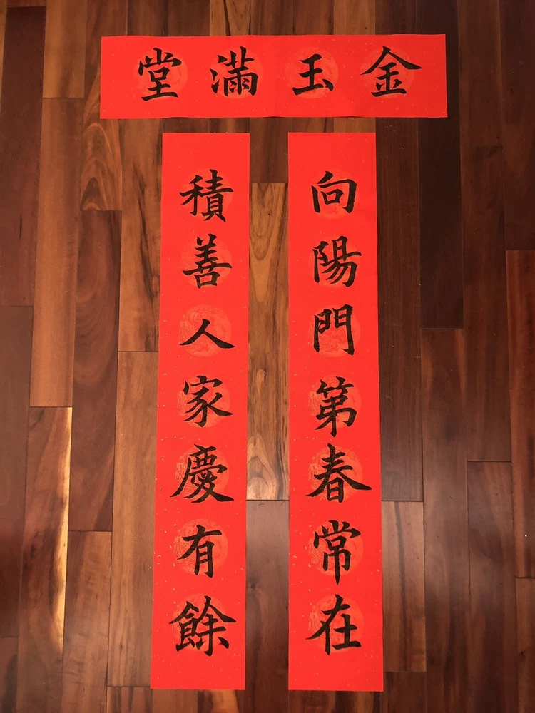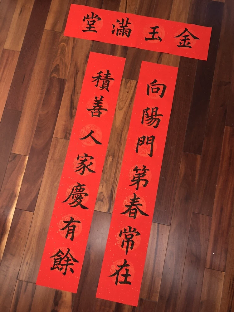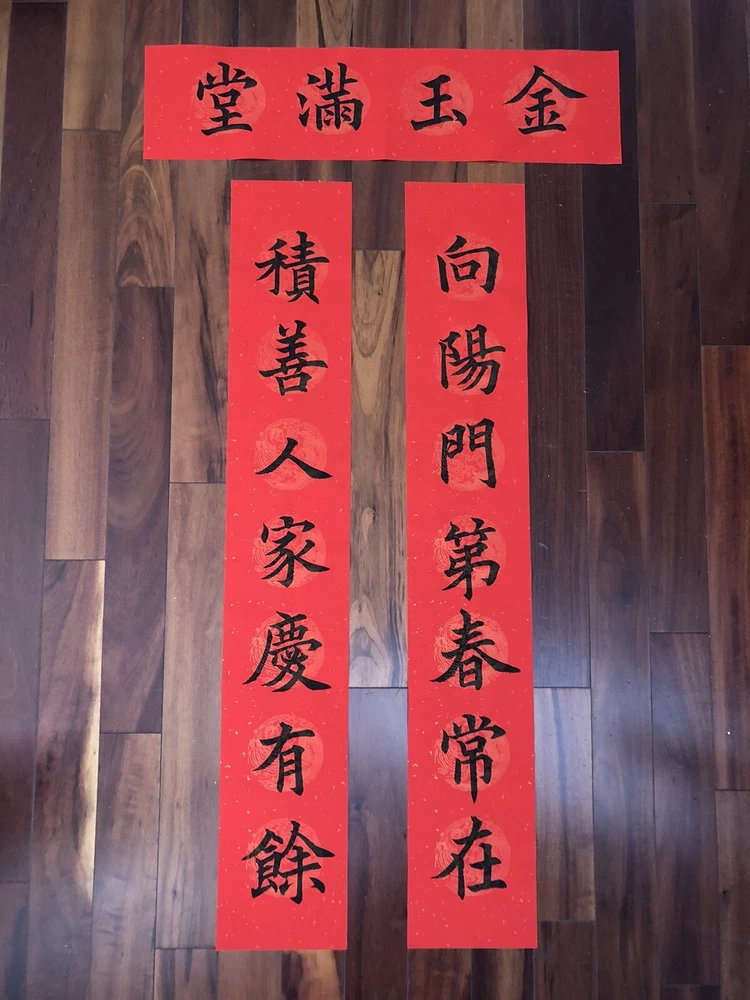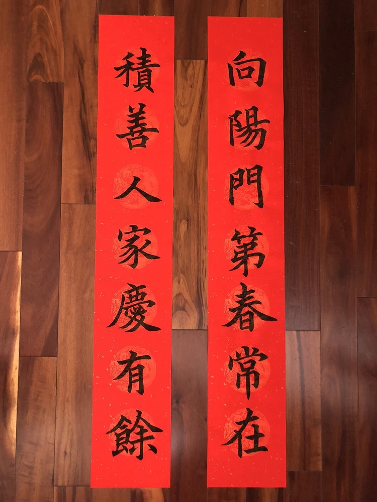 2025 Year of Snake Handwritten Set Of 3 Couplets Wall Decoration蛇年3件手寫春聯. 春15向陽門第. Hand written Not Printed. Condition is New. Greetings for Chinese New Year. Wall and door Decorations. Shipped with USPS Ground Advantage. What is written: Right: 向陽門第春常在 (bright family makes spring stay longer) Left: 積善人家慶有餘 (kind family often has extra wealth) Up: 金玉滿堂 (Gold and jades are full of the house) Calligraphy style: standard scripts 楷書 Materials: black ink on red paper with GOLD and CLOUD patterns printed Size of paper: Long paper 41”x 6.7” Short paper 27”x 6.7” Year of production: 2025 Others: 1. This is an unframed work which is designed for Chinese New Year celebration. This is a wall and door decoration. 2. The couplets will be rolled up and wrapped with bubble sheets. No folding. 3. You will receive 3 pieces of red paper with Chinese calligraphy written on it. 4. Postage is automatically estimated by eBay. Postage can be combined when buying more than one items. Please message me for a multi item purchase. Final sales no return no refund. Thanks for watching! *Introduction to the calligrapher: Hello, my name is Anita Hsin Hao Wang. I am from Taipei, Taiwan. I currently live in Thousand Oaks, California, with my family. I nickname myself Houde for the convenience of writing. I started learning calligraphy when I was 8 years old. I practiced Ouyang Xun's regular script and official script with great success. I have participated in county and local calligraphy competitions and won numerous awards since the fourth grade of elementary school. After that, I practiced running script and Wei Bei by myself, so I have some experience in regular script, Official script and Wei Bei. Now doing Chinese calligraphy every day has become my best way to relieve stress besides taking care of my family