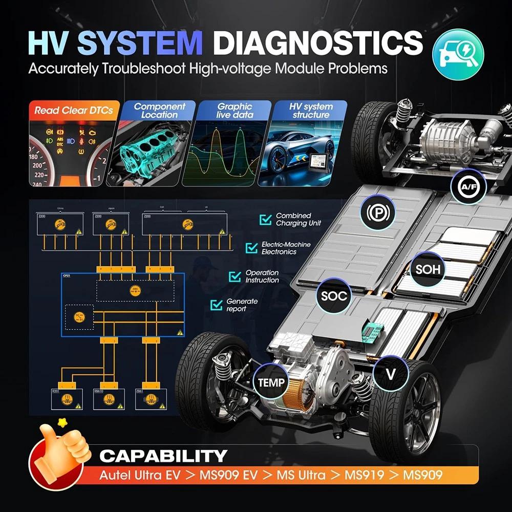 2026 Autel MaxiSys Ultra EV Electric Diagnostic Scanner 5 IN 1 VCMI Programming motor_diag is an eBay certified Autel authorized store, we sell Autel genuine scanners, provide official after-sales service, repairs, free returns, Autel technical support (lifetime) and more. Click here to send a message to the seller and get the latest discounts! Product Description 🎁Free Gift 1:Autel Maxivideo MV108S*1 🎁 1 year free update Autel MaxiSYS Ultra EV: 2026 Top EV Diagnostic Scan Tool, High-Voltage System Battery Pack Analyze, Up of MSUltra MS909EV, MS909,MS919, Motor TruSpeed, Topology 2.0, $1000 EVDiag KIT, ECU Programming, 40 Service Highlights: 1. One Year Update Online, after one year, you can contact the seller get better price for one year update card. 2. Advanced Diagnostics: Comprehensive coverage for U.S., European, and Asian electric, hybrid, gas, and diesel vehicles. 3. High-Voltage System Analysis: Rapidly diagnose high-voltage systems with the ability to read and erase codes, view live data, and access detailed system diagrams. 4. Battery Pack Diagnostics: Perform SOC and SOH analysis via OBD or directly with included specialty cables and jumpers. The Ultra EV provides in-depth connection guidance for safe and secure testing. 5. Interactive Data Logging: Directly connect with AUTEL support for real-time troubleshooting of diagnostic issues. 6. Workshop Management: Efficiently manage workshop operations and keep all data files, customer info, and vehicle records well organized. 7. Topology Mapping: Visualize the entire system with color-coded topology maps for supported vehicles. 8. Oscilloscope Functionality: The VCMI 5-in-1 device includes a multimeter, waveform generator, and CAN Bus tester for advanced diagnostics. 9. Cloud-based Data Storage: Saves customer and vehicle records, scanner data and technician notes. Description: The 2026 AUTEL MaxiSYS Ultra EV is the next-generation diagnostic tool designed for electric, hybrid, gas, and diesel vehicles. With its 12.7-inch touchscreen tablet and MaxiFlash VCMI (5-in-1) measurement device, the Ultra EV offers unparalleled diagnostic capabilities for high-voltage systems, battery packs, and more. Whether you're performing State of Charge (SOC) and State of Health (SOH) analysis or diagnosing complex electrical systems, the Ultra EV provides detailed graphics and step-by-step guidance to ensure safe and accurate testing. Equipped with a Bluetooth-enabled vehicle communication interface, J2534 pass-thru programming, and a dedicated EVDiag box, the Ultra EV is the ultimate tool for modern automotive diagnostics. ✅Product Comparison Between MS909EV and Ultra EV: Model ✳️MS909EV ✳️Ultra EV Connection Bluetooth MaxiFlash VCI Bluetooth MaxiFlash VCMI Screen 9.7inch touchscreen 12.9inch touchscreen Battery 15,000mAh 18,000mAh Processor 2.2GHz+1.8GHz octa-core 2.2GHz+1.8GHz octa-core Memory 128GB SSD/ 4GB RAM 256GB SSD/ 4GB RAM Camera 16MP rear/16MP front 16MP rear/5MP front Docking Station × Included EVDiag Box Included Included Operating System Android 10.0 Android 7.0 Automatic Detection Auto-VIN/Auto-Scan Scan VIN/Plate Scan Auto-VIN/Auto-Scan Scan VIN/Plate Scan Secure Gateway Access Authorized FCA Access With AutoAuth account Authorized FCA Access With AutoAuth account License Plate Reader Available on select vehicles Available on select vehicles Vehicle Coverage U.S., European and Asian electric, gas and diesel, and hybrid vehicles U.S., European and Asian electric, gas and diesel, and hybrid vehicles OBDII Test Modes All 10 test modes All 10 test modes Service Resets 36 service features 36 service features Diesel PM Reset diesel emissions Light&medium duty vehicles Reset diesel emissions Light&medium duty vehicles System Diagnostics Access all modules in all systems Access all modules in all systems High-voltage System Diagnostics Diagrams of high-voltage system block Diagrams of high-voltage system block Battery Pack Diagnostics SOC and SOH analysis SOC and SOH analysis Component Activations Bi-directional control Bi-directional control Enhanced Functions Coding&adaptations Coding&adaptations ADAS Calibration ADAS Upgrade & Frame Kit Purchase required ADAS Upgrade & Frame Kit Purchase required Cloud Services Remote programming & Report storage Remote programming & Report storage Topology Module Mapping Color coded all system status screen on supported vehicles Color coded all system status screen on supported vehicles Oscilloscope × VCMI 5-in-one devic, VCI multimeter, waveform generator, CAN Bus tester Payment Delivery details Terms of sales About us Contact us Payment We accept all common forms of payment such as Credit cards、Debit card、Google Pay ect. Please contact us if you need to use another method to pay. Payment should be made within 7 days after bidding ends. Otherwise a Unpaid Item case will be opened to you. We are not responsible for buyers’ local taxes. Please include your special requests in eBay note if there is any. Delivery details Shipping: Most orders placed by 1PM eastern time, Monday thru Friday will be shipped within 1 business day after payment confirmed. All orders placed over the weekend will be shipped on Monday. We have warehouse in USA, UK, HongKong, Australia, Russian, Germany and China warehouse . Notice: For USA Buyer, we have warehouse located in Kentucky, Los Angeles & New Jersey etc. (East Side & West Side of USA) , parcel will be shipped from the nearest warehouse according to buyers' eBay address in the paid ORDER . 1. From our US/DE/UK/AU warehouse via UPS / DHL or other eCommerce shipping. Delivery time varies from 2 to 6 business days. 2. From our Hong Kong warehouse via UPS / DHL / FedEx Ground etc. Delivery time varies from 3 to 7 business days. 3. From our China warehouse For US buyers, we use e-Packet (Delivery time is 5-12 business days) or express delivery(Delivery time is 3-7 business days) . For other countries' buyers, we use China Post or Hong Kong Post(Delive