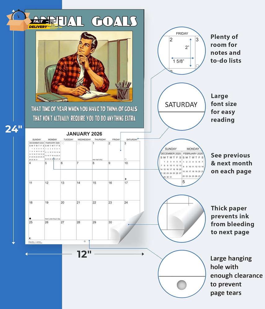Store New Arrivals Add to Favorite View Feedback Contact 2026 Disgruntled Employee'S Guide to the Daily Grind White Elephant Monthly Wal Description Item model number 23-008 Item Weight 8.4 ounces Sheet Size 12.0 x 12.0 inches Mounting Type wall mount Color Demotivational Material Paper Material Type Paper Manufacturer Part Number 23-008 Global Trade Identification Number 00850037466658 Theme Office Product Dimensions 12"W x 24"H Gag and White Elephant Gift - Whether you're surprising a friend, family member, or coworker with a penchant for humor, this calendar is the right choice 13 Hilarious Images - You won't be able to resist the chuckles as you flip to a fresh page each month 16-Month Calendar – Includes a convenient September 2025-December 2025 first page layout, followed by full monthly pages from January 2026-December 2026. Large Daily Grid Spaces – Generous 2" x 1 5/8" blocks provide ample space for notes, appointments, and reminders. Thick, Durable Paper – Made with premium, thick paper that prevents tearing and ink bleed-through. Large Calendar Size – Measuring 12" x 24" when open, this calendar is a striking addition to any wall. Easy to Hang– Features a large hanging hole for quick and secure display. Professionally Designed – Clean, elegant layouts with high resolution images for a polished, visually appealing calendar. Built to Last – Crafted from excellent materials to ensure durability throughout the year. Product description ABOUT US We offer the best prices around on high quality products. Our E-store includes media such as books, movies, music and games while offering electronics, toys, sporting apparel, clothing, tools, general home, garden items and more. SHIPPING We are always working hard to ensure your package arrives as soon as possible. Please understand that some factors like weather, high postal traffic, and the performance of shipping companies are outside of our control. We offer free shipping to the lower 48 states and ship within 2 business days of payment, usually sooner. We do not accept P.O. Boxes. Please provide a physical address. For shipping outside of the continental USA, we only use eBay's Global Shipping Program.The item is shipped to KY and then sent to the rest of the world. International customers are responsible for all duties and taxes. Continue to check out in order to calculate costs for shipping the item to your country. Messages regarding eBay's Global Shipping Program MUST be directed at eBay EXCLUSIVELY. RETURNS We offer a 30-Day Return Policy on items which you are not completely satisfied with. You have the option for a full-refund or an exchange of the item. No returns are available on items shipped outside of the USA. PAYMENT We accept PayPal. CONTACT US This page content is yet to come Please ad us to your favorite seller and visit again later Thank You CUSTOMER SATISFACTION We try our very best to make sure every customer is completely satisfied. If there's a problem, message us! We're happy to help. WE ACCEPT Copyright © 2021 AutoDS. | All Rights Reserved