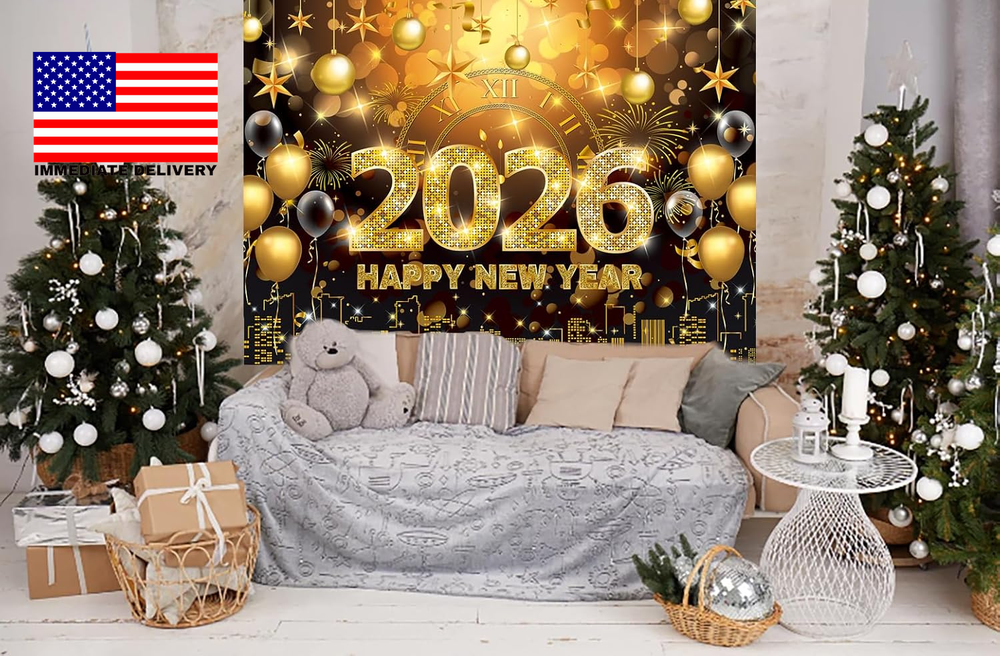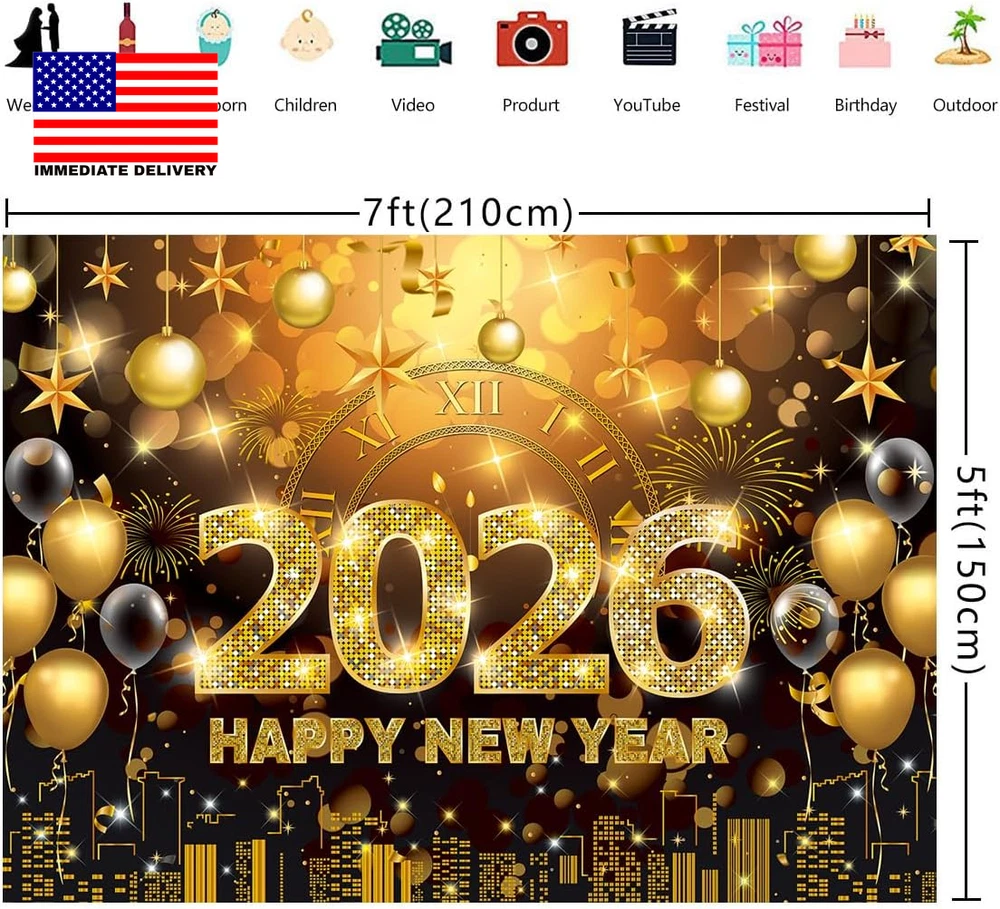 $ 6.96Happy New Year Backdrop 2026 Background Banner Large Size New Years Eve Photo Bo