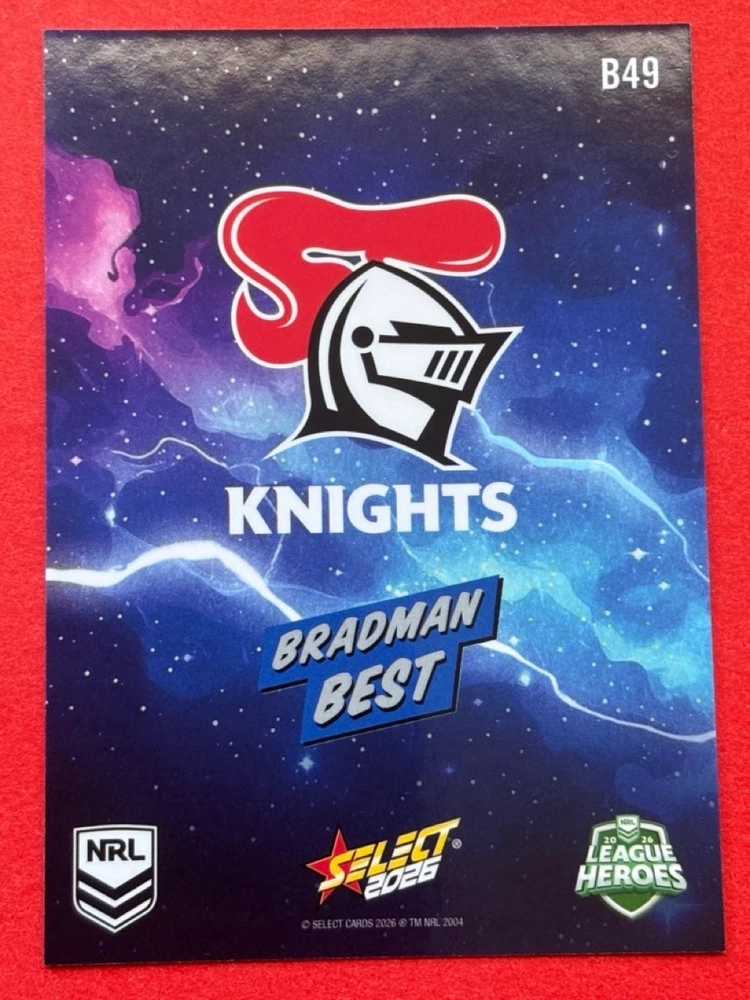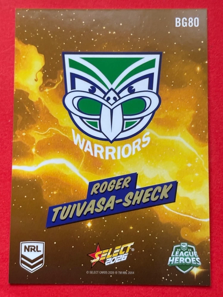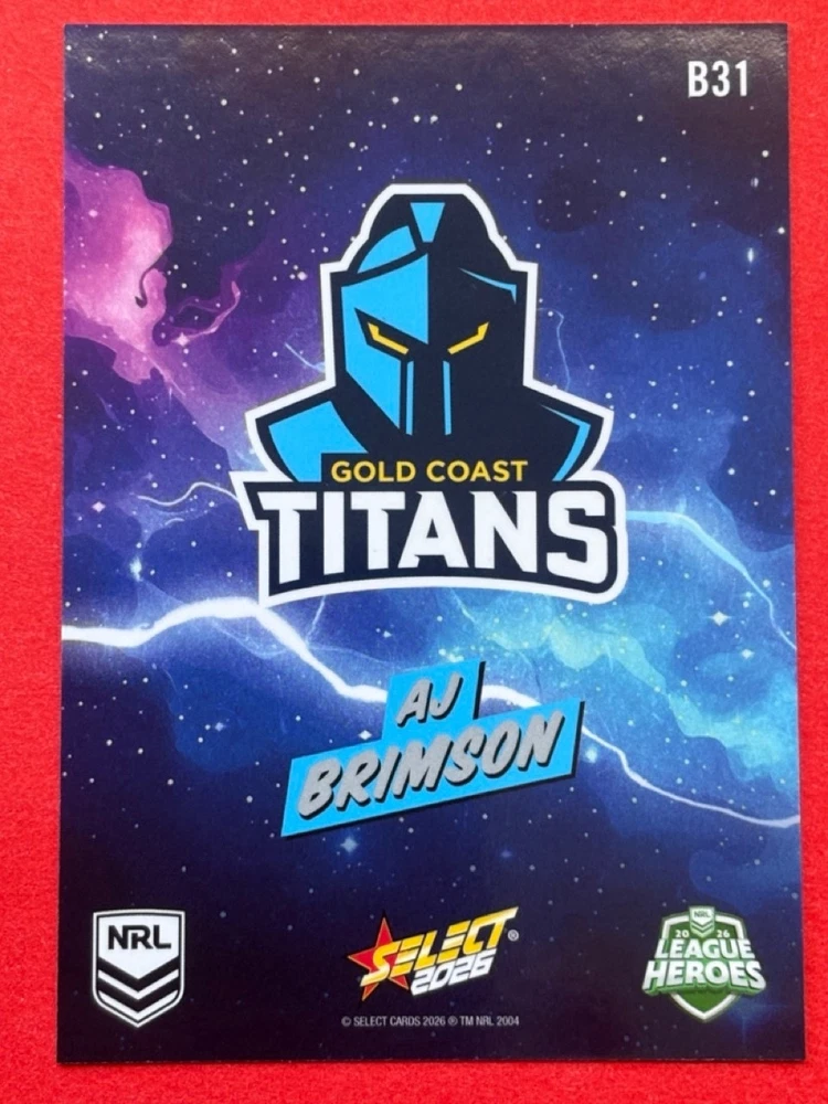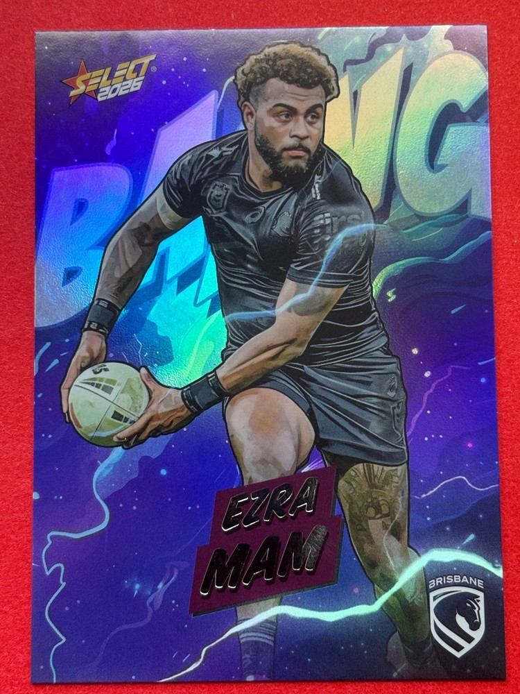 Dive into the excitement of the 2026 NRL season with our League Heroes Bang card, featuring the powerhouse of the Brisbane Broncos. Whether you're a die-hard fan or a dedicated collector, this card is a must-have addition to your collection. Proudly showcasing the iconic team, this trading card is a tribute to the NRL's elite rugby league athletes. Crafted by Select, a trusted manufacturer in the sporting memorabilia realm, this card comes from the 2026 NRL League Heroes set. It's a unique piece that celebrates the sport's top talent and their contribution to the Heros league. With the card presented in English and adhering to the standard card size, it's perfect for display or safekeeping.