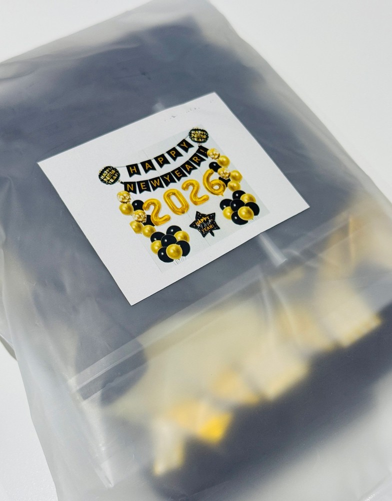 New Years Eve 2026 Balloons and decorations. HAPPY NEW YEAR NYE 2026 Say goodbye to 2025 and Hello 2026 with these Beautiful Black and Gold New Years Eve NYE decorations. Perfect for NYE parties, backdrops and photo opportunities. Balloons can be air filled or filled with Helium if you want them to float. 41 Piece Balloon / Decorations set includes: - 4 x Large 32" inch foil number balloons numbers – ‘2026’ - 1 x ‘Happy New Year!’ Banner - 1 x 18” Foil star Balloon 'Happy New Year' - 2 x 18” Circular Balloons 'Happy New Year' - 4 x 12” Clear Latex Balloons with Gold Confetti inside - 12 x 12” Gold Latex Balloons - 17 x 12” Black Latex Balloons - 1 x Straw to Inflate Balloons - 1 x Set of Sticky Glue Dots to Stick Balloons together - 1 x Gold String - 1 x Black String (for banner) 41 piece set New Years Eve 2026 Balloons / Decoration set includes: 32” Large foil 2026 balloons, Happy New Years! Banner with string, 2 x 18” Happy New Years foil circular balloons, 1 x 18” Gold foil star balloons, 12 x 12” Gold latex balloons, 17 x 12” Black latex balloons, 4 x 12” Clear latex balloons with gold confetti, straw for inflating, glue dots, string for hanging / floating balloons. - 32 inch 2026 NYE Balloons - New Years Eve 2026 Balloons Decorations Set - New Years Eve Photo back drop prop set - Black and Gold New Years Eve Decorations