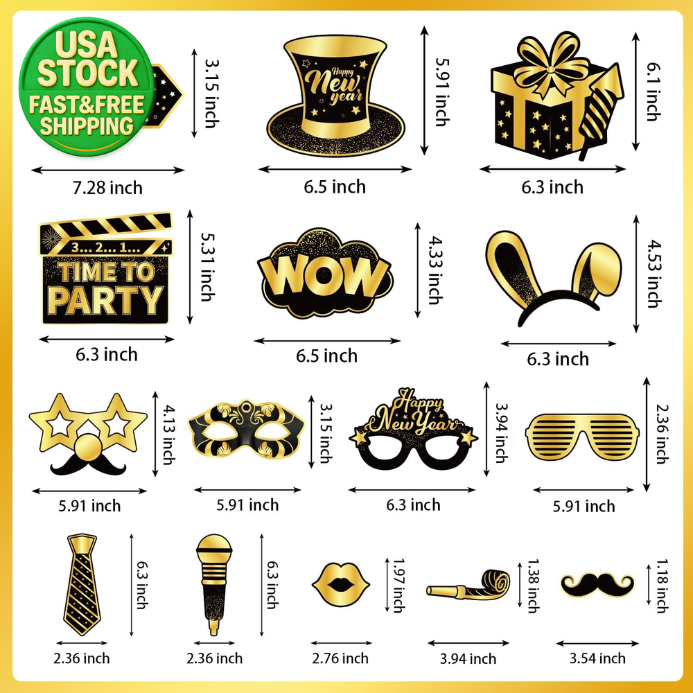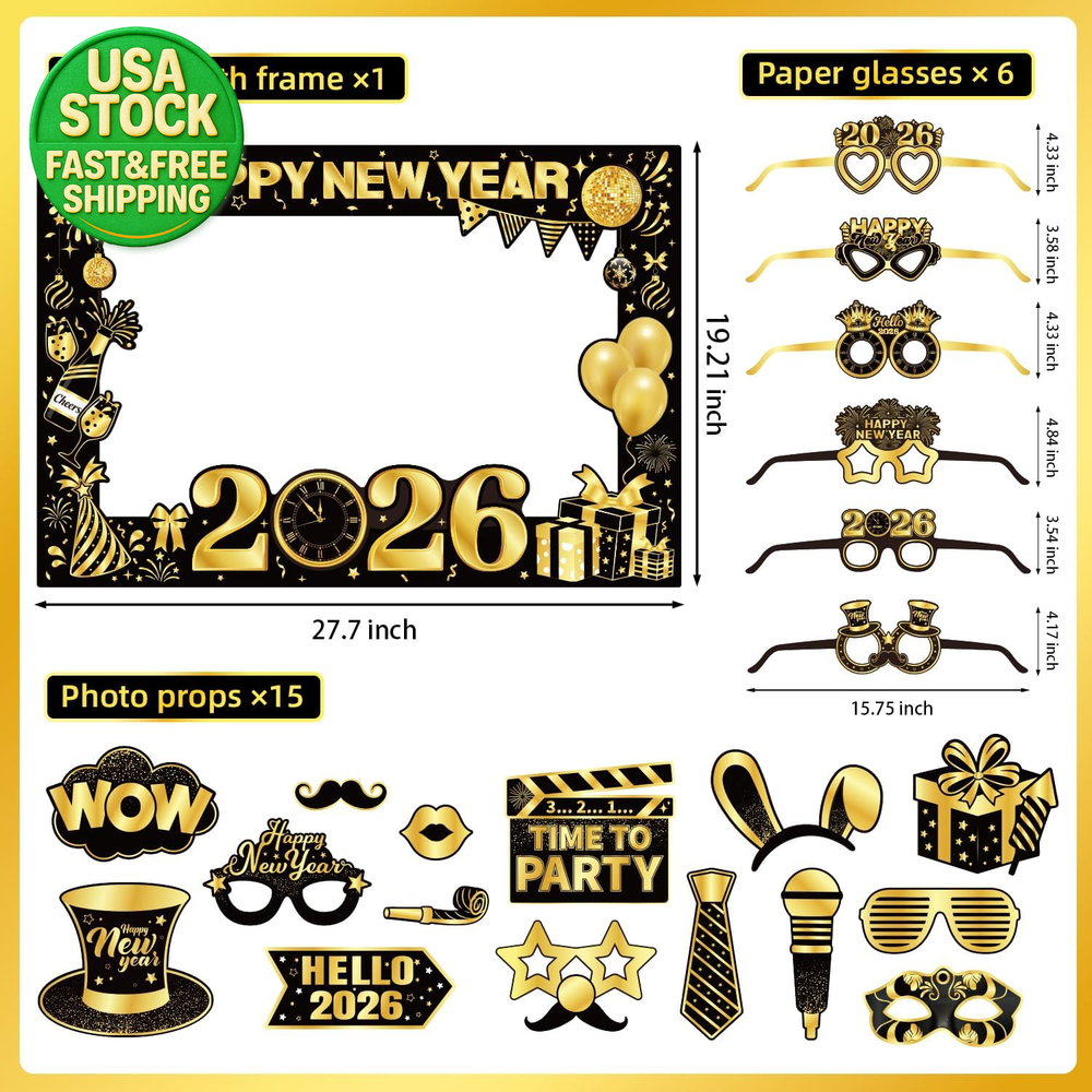Fast Shipping On All Items 60 Days Money Guarantee Customer Support Excellent Service 100% Satisfaction Satisfaction Guaranteed 2026 New Years Eve Photo Booth Props Kit Paper Frame Fun Glasses Party Decor Specification Item model number PP01 Color Newyearseve Material Paper Item Weight 6.4 ounces Theme New Year Package Dimensions 13.86 x 10.2 x 0.75 inches Number of Pieces 22 Returns Accept returns until 60 Days Payments Secure payments Shipping Free & Very Fast Shipping Condition New Handling Time 1-2 Days Payments Methods PayPal / Credit Card / eBay Managed Payments Tracking Provided A tracking number will be provided with the shipment. 10.2 inches x 13.86 inches x 0.75 inches. Weight: 6.4 oz Item Description COMPLETE PHOTO BOOTH KIT – Includes 1 large paper frame (19" x 28"), 15 fun party props, 15 wooden sticks, and 6 festive paper glasses. Everything you need to create unforgettable memories at your New Year’s Eve party! HIGH-QUALITY & STURDY MATERIAL – Made from premium cardstock and durable wooden sticks, our props are built to last throughout the night. The glitter accents add a festive sparkle to every photo! EASY SETUP & READY TO USE – Simply attach the props to the sticks using the included adhesive dots. No tools required – perfect for quick setup and hassle-free fun! PERFECT FOR ALL AGES & OCCASIONS – Great for family gatherings, office parties, school events, or any New Year’s celebration. Bring laughter and joy to your 2026 NYE party with these playful photo booth accessories. EXCELLENT PARTY FAVOR & GIFT IDEA – Whether you're hosting a small get-together or a large event, this kit makes a fantastic party favor or gift. Reusable and memorable – your guests will love it! Celebrate the arrival of 2026 in style with our all-inclusive New Year’s Eve Photo Booth Props Kit! Whether you're hosting a cozy family gathering or a lively party with friends, this kit is designed to bring fun, laughter, and plenty of photo opportunities to your celebration. 📦 WHAT’S INCLUDED: 1 x Large Paper Frame (19" x 28") 15 x Themed Party Props 15 x Wooden Sticks 6 x Decorative Paper Glasses 🌟 WHY CHOOSE OUR PHOTO BOOTH KIT? Easy to Assemble – No complicated setup. Just stick and play! Vibrant & Festive Designs – Glittery and colorful designs that pop in photos. Great for Groups – Plenty of props for everyone to join the fun. Reusable & Durable – High-quality materials mean you can reuse them for future parties. Make your New Year’s Eve party the talk of the town with these must-have photo booth props. Order now and get ready to capture the best moments of 2026! About us Welcome to our eBay store, your one-stop shop for a wide range of products designed to enhance your home and improve your well-being. From stylish home essentials to health and wellness items, we offer a diverse selection of high-quality products that cater to all your needs. At our store, we believe in providing excellent customer service with a focus on kindness, care, and generosity. We are dedicated to ensuring that every shopping experience is smooth and satisfying, and we take pride in offering fast, reliable shipping to most countries around the world. Whether you're looking for home decor, health products, or unique finds, we have something for everyone. Shop with us today and experience the difference of a store that truly cares about its customers! Shipping Handling Time: We typically process and ship orders within 1-4 business days. While we aim to ship much faster, we allow this buffer to ensure that all orders are handled with the utmost care and attention. Shipping Time: Most of our shipments are delivered within 1-5 business days. Typically, your order will arrive in 2-3 business days, but we provide this range as a precaution to account for any unexpected delays in the shipping process. We are committed to delivering your order as quickly as possible and often ship well ahead of our stated timeframes. We only build in extra time to give us a buffer in case of unforeseen circumstances. Thank you for your understanding and patience!. Returns Return Policy We want you to be completely satisfied with your purchase. If for any reason you're not happy with your product, you may return it within 60 days of receipt, provided the return is for a valid reason. Eligibility for Returns: Returns are accepted only for justified reasons, such as product defects, damage during transit, or any other issues that prevent the product from meeting your expectations. Return Process: To initiate a return, please contact us within 60 days of receiving the product. Once your return is approved, we will provide you with instructions on how to send the item back to us. Condition of the Product: The product must be in its original condition, unused, and in its original packaging (if applicable) to qualify for a return. We strive to ensure that our customers are happy with their purchases and will do our best to resolve any issues promptly. Thank you for shopping with us! Satisfaction We always strive to ensure that every customer is completely satisfied with their purchase. If you encounter any issues or have any questions, feel free to message us! We're here to assist you and are happy to help. Chiclivingshop. Payment Options Shop With Confidence