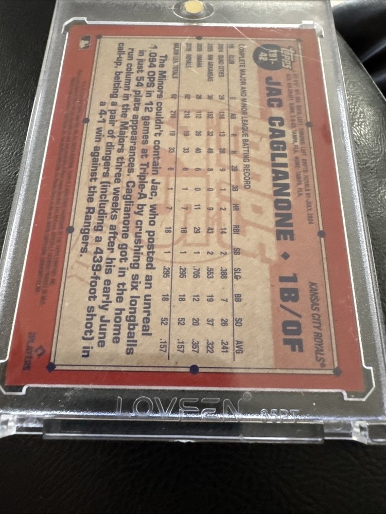 Country of Origin:United StatesTeam:Kansas City RoyalsManufacturer:ToppsAutograph Authentication:ToppsAutographed:NoType:Sports Trading CardFeatures:RookieCard Size:StandardSigned By:Shohei OhtaniCustomized:NoAutograph Format:Hard SignedCard Condition:Near Mint or BetterGraded:NoYear Manufactured:2026Card Thickness:20 Pt.Event/Tournament:MLB World SeriesSet:1991 ToppsCard Number:T91-42Original/Licensed Reprint:OriginalSeason:2026Player/Athlete:Jac CaglianoneLanguage:EnglishLeague:Major League (MLB)Material:Card StockVintage:NoSport:Baseball