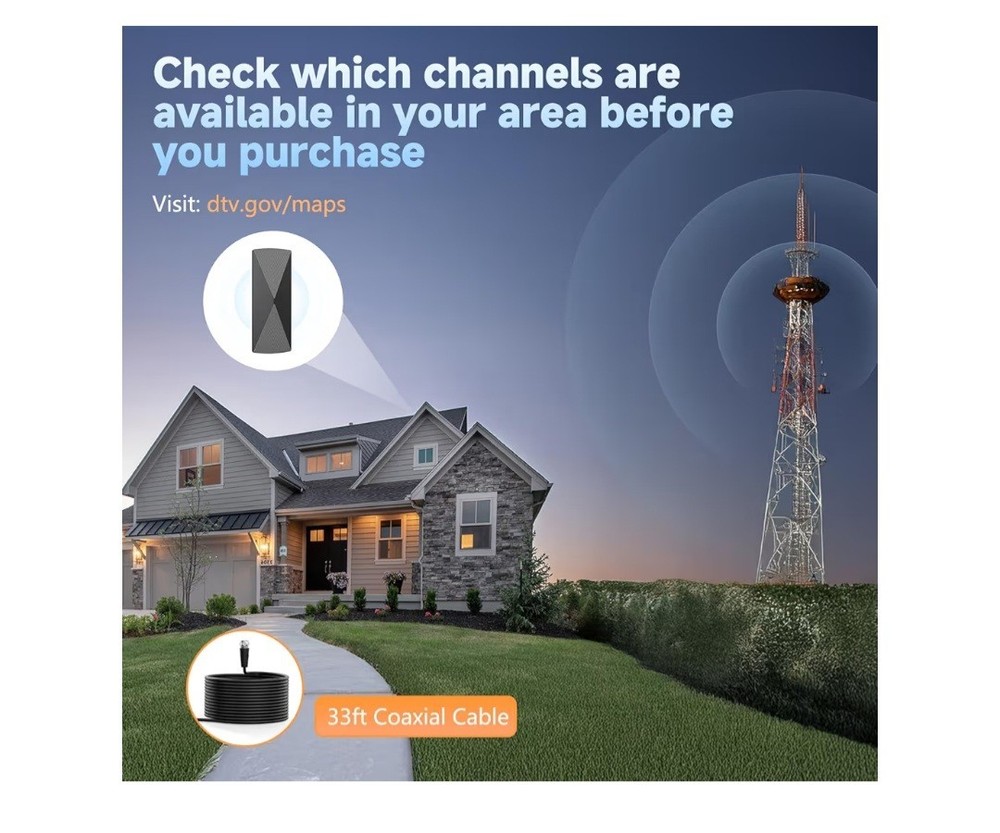 2026 TV Antenna, Digital TV Antenna Indoor with Signal Booster, Long Range Antenna for Smart TV and All Older TV's-Supports 4K 1080p -33ft Coaxial Cable