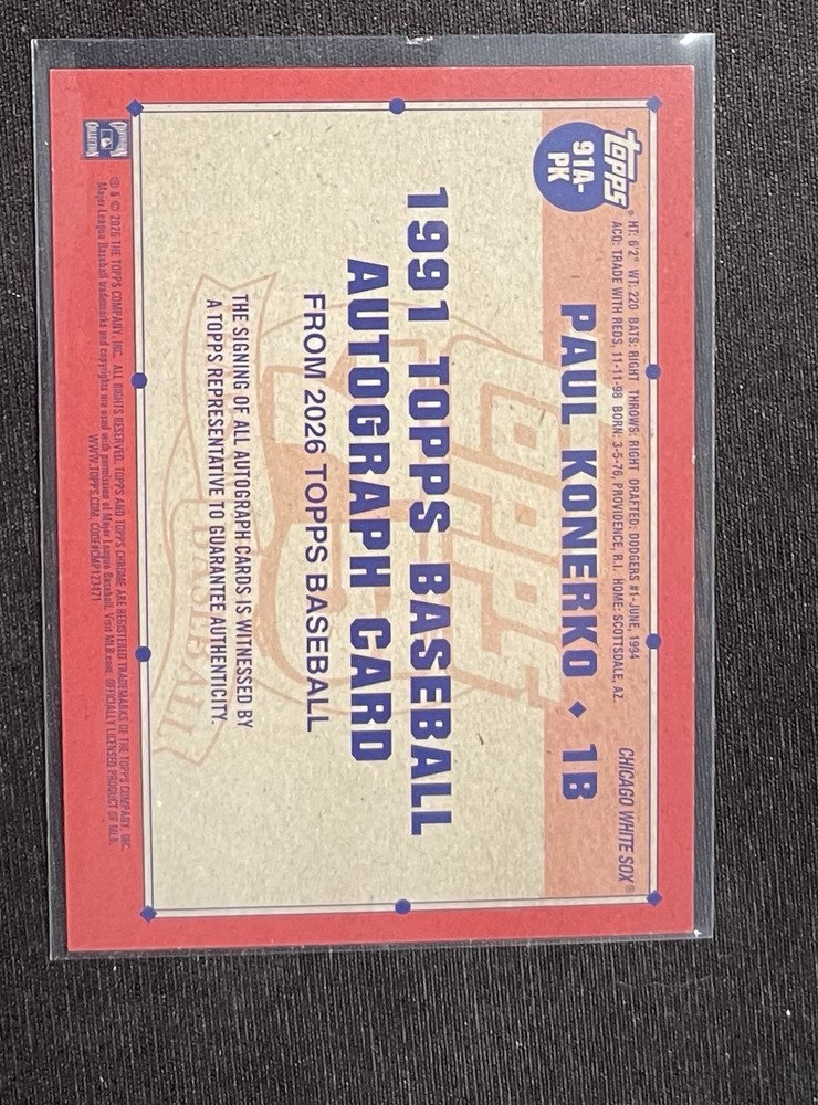 2026 Topps Series 1 - 1991 Topps Baseball Autographs Paul Konerko #91A-PK Blue /150 (AU)