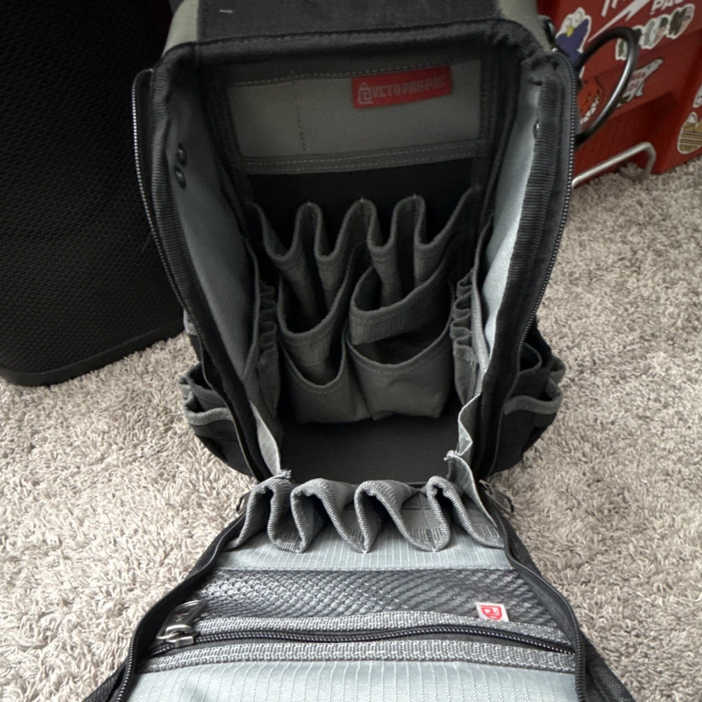 The 2026 VETO PRO PAC Tech Pac CB-LD Tool Bag in black and gray is a medium-sized tool backpack designed by VETO PRO PAC. Made of durable nylon material, this tool bag features multiple compartments for organized storage of tools and accessories. It is portable with a padded handle for easy carrying, making it ideal for professionals and DIY enthusiasts alike. With its sleek design and functional features, the VETO PRO PAC Tech Pac CB-LD Tool Bag is a convenient and practical option for carrying and storing tools in various settings. This item has not seen a job site or even had the chance to have a tool inside of it. This was a spring promo that came along with one of my purchases earlier this month.
