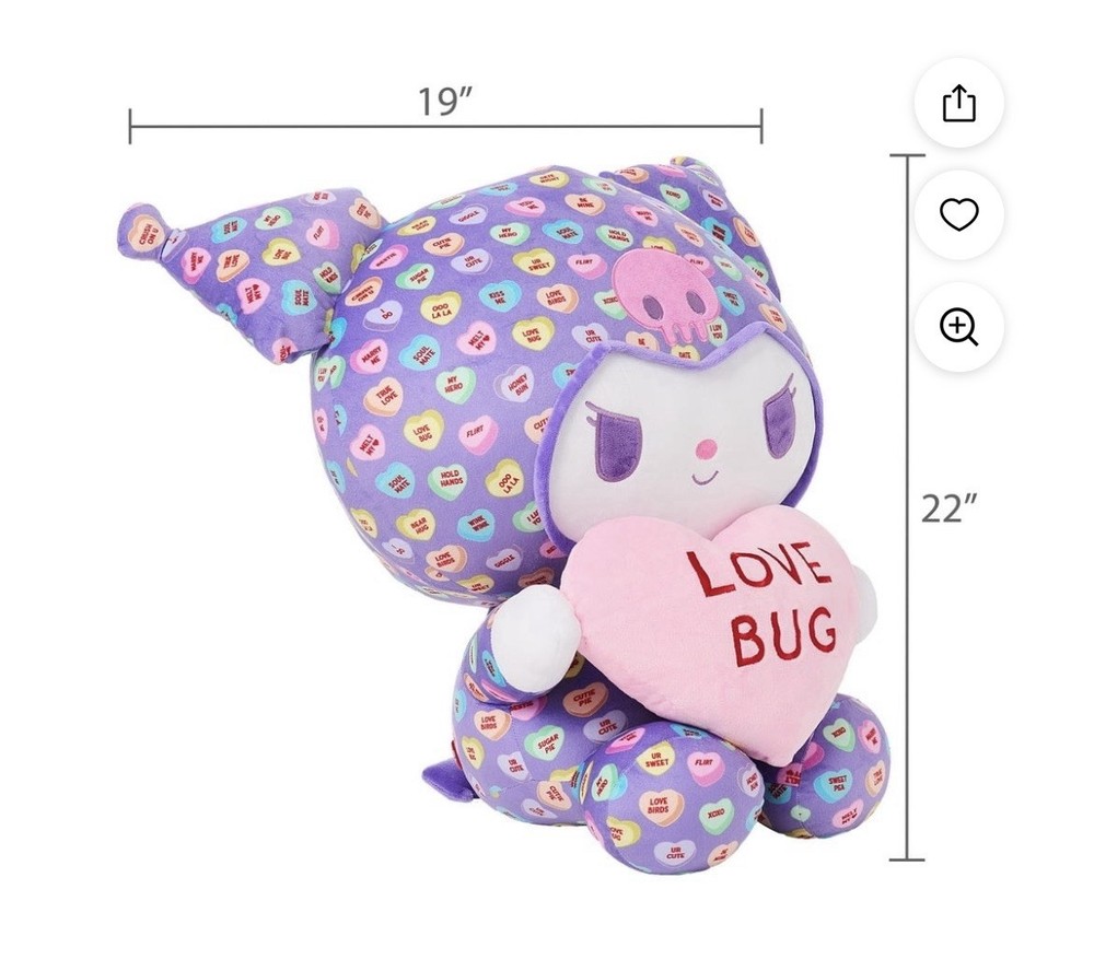 The 2026 XL Sanrio Kuromi Plush in Sweethearts Candy Extra Large 21" is a plush toy featuring the popular Sanrio character, Kuromi. This limited edition collectible is part of the Sanrio franchise and is designed for fans of the Sweethearts TV show. Made of plush material, this stuffed animal is perfect for anime enthusiasts looking to add to their collection, especially those who attended Anime Expo events.